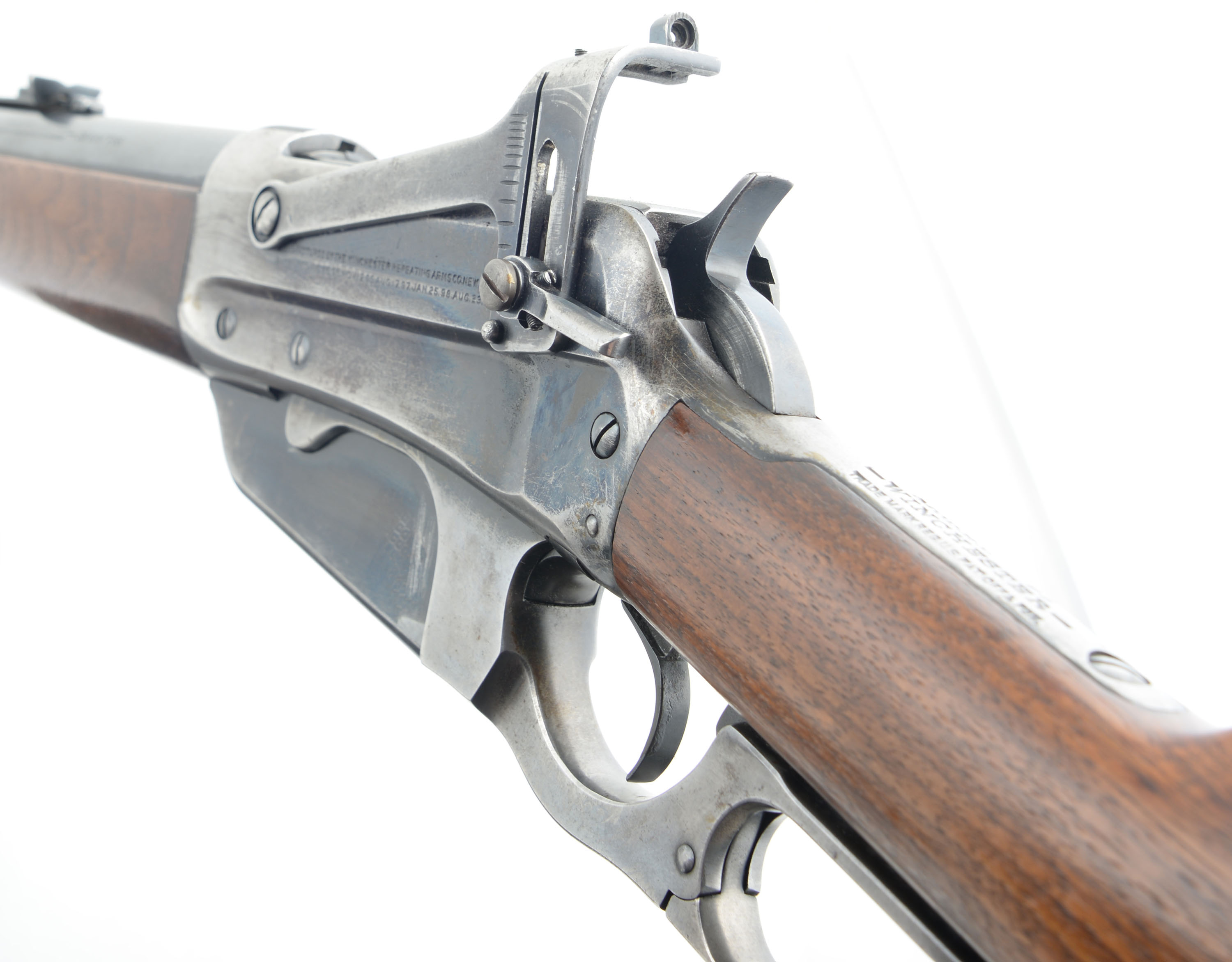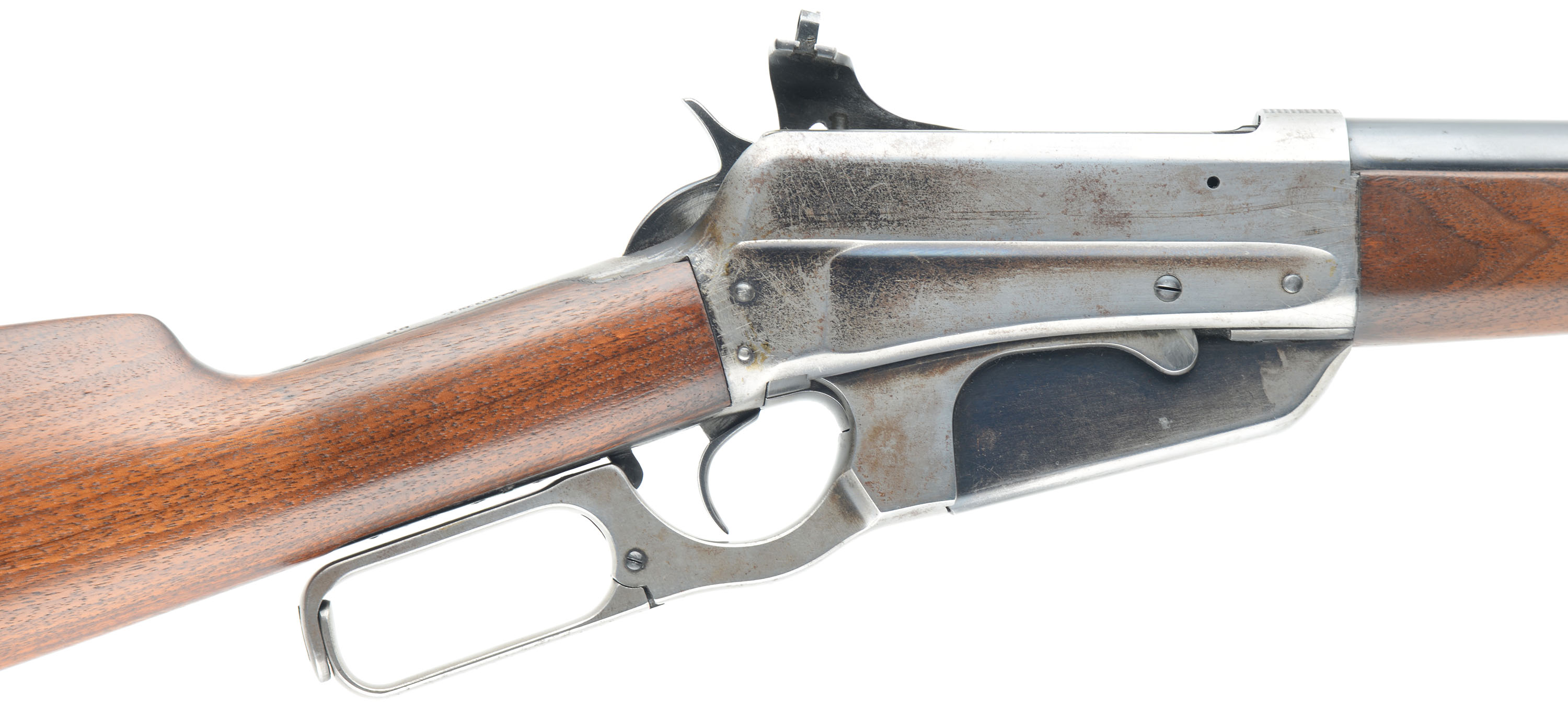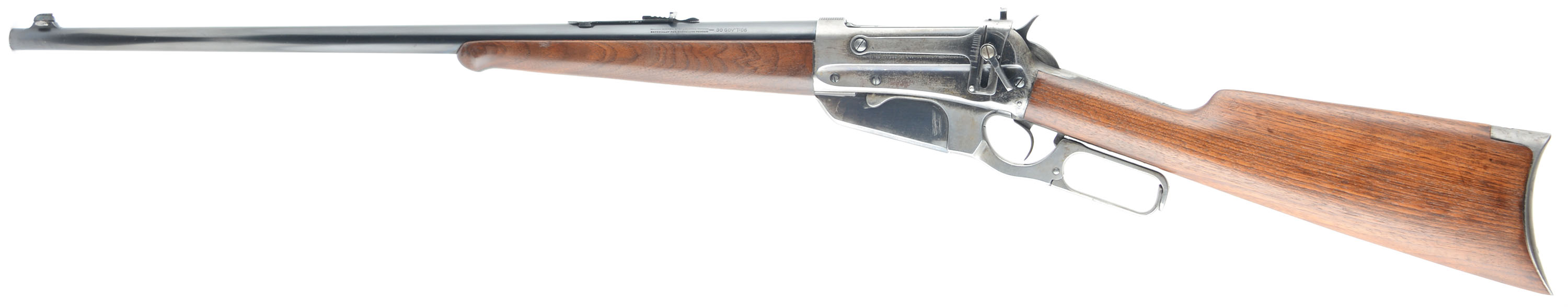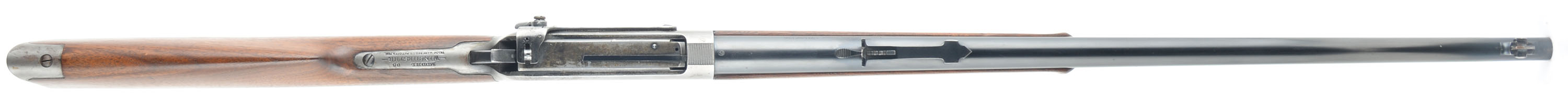Winchester Model 95, CAL: 30 GOV'T-06, MFG: 1924, SN: 419851 Lever Action Rifle, 24'' round tapered barrel. The original straight grip wood stocks are excellent, as having been cleaned, possibly very lightly sanded, & excellently refinished. There are very few handling marks or minor contusions remaining. The factory metal blue finish rates 95% on the barrel, while the receiver has worn mostly gun metal gray, with protected areas displaying remnants of original blue. Bore is excellent. The rifle is fitted with a Climbing Lyman #21 receiver sight, while the barrel carries an adjustable rear sight & Marbles Sheard elongated blade front sight. Crescent metal buttplate. Tight smooth action. The rifle presents very well. FFL or C&R - Value: 2000 to 2750