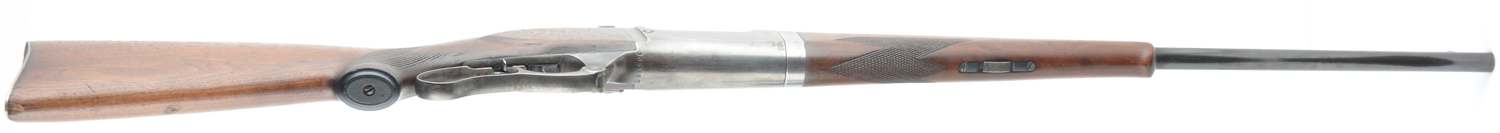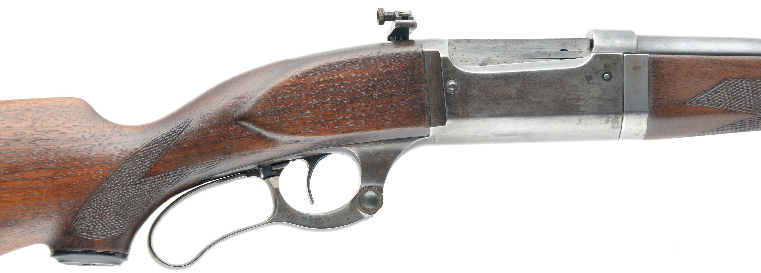 Savage, Model 99 Take-down, CAL: 250-3000 SAV, MFG: 1927, SN: 305762, Lever Action Rifle, 22 1/4'' round barrel. The original checkered & capped pistol grip wood stocks are excellent. There is a small chip & 1/2'' crack at the toe, a small gouge on the belly of the stock & other minor handling marks, scratches & contusions to the original finish. The original metal blue finish on the barrel rates 40%, while the receiver has worn mostly gun metal gray with a thin brown patina. The case-hardened lever has also worn mostly gray, but with remnants of case-colors. Bore is excellent & bright. The receiver holds a side mounted Redfield peep sight, while the barrel has a lead filled rear dovetail & ramp elevated blade front sight. The stock carries the original serrated metal buttplate. A quality vintage take-down lever. FFL or C&R Req. - Value: 600 to 1200