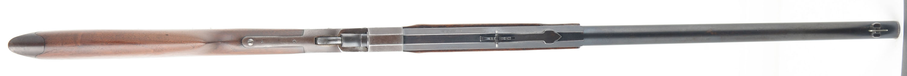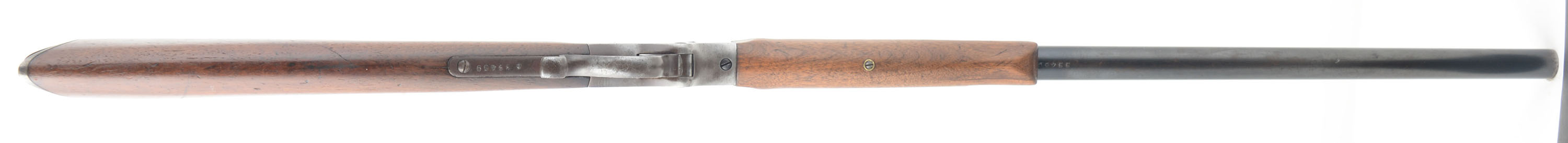 J. Stevens Arms Co., Model No. 44, Cal: 22 LR, MFG: 1894 - 1933, SN: 33459, Single Shot Rolling Block, 24'' Octagon to round barrel. The original straight grip wood stocks are very good, as having been lightly sanded & an older refinish. There are several minor scratches, handling marks & contusions to the current worn thin finish. There are a couple glue repaired hairline cracks & a 2'' sliver of missing edge wood to the forend . The right side of barrel is stamped ''J. STEVENS ARMS CO. CHICOPEE FALLS.MASS. USA.'', while the left side is stamped ''22-LR''. There is a ''2'' stamped in the underside of the barrel, under the forend. The SN is stamped on both the lower tang & the barrel. The original metal blue finish to the barrel rates 65%, while the receiver & lever display a thin brown patina. The barrel carries an adjustable rear & Rocky Mountain front sights. Bore is fair, with roughness amongst worn rifling. Stock carries a crescent metal buttplate. Roughly 100,000 Stevens 44 rifles were produced in all calibers. FFL or C&R Req - Value: 400 to 800