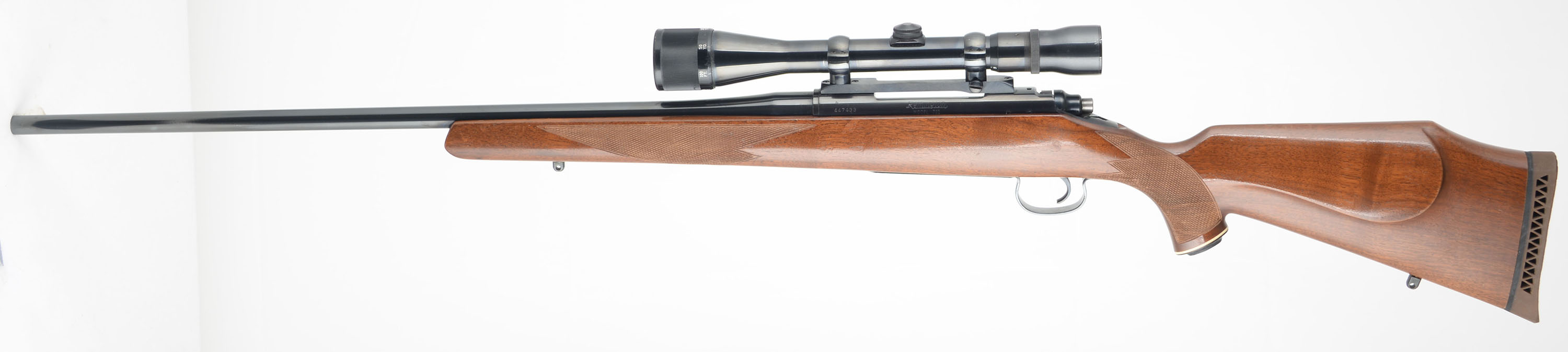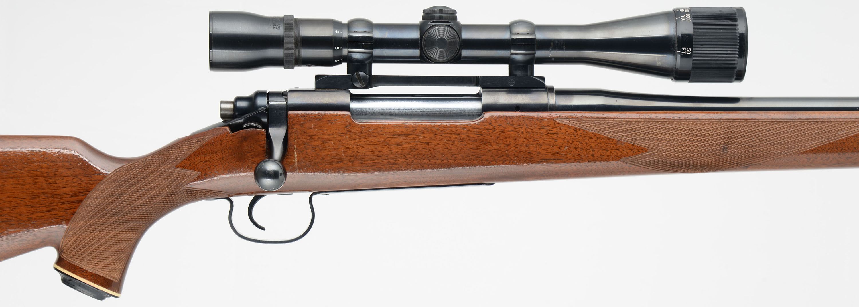 Remington Model 721, CAL: 270 WIN, MFG: 1948-61, SN: 447433, Bolt Action Rifle, 25'' barrel. The checkered, cheeked & capped pistol grip Monte Carlo wood stock is excellent, with several minor handling marks, scratches & contusions to the original finish. The metal blue finish rates 98% overall, with the receiver starting to tone plum. No markings on the barrel. Bore is excellent. The rifle carries a period correct Weaver V9 50 ft to 1000yd scope, mounted on Redfield block & rings. The barrel has no open sight provisions. Buttstock carries a Dupont Grand-Luxe ventilated recoil pad. Sling studs. A very nice utilitarian hunting rifle in a popular deer hunting caliber. FFL or C&R Req. - Value: 500 to 800