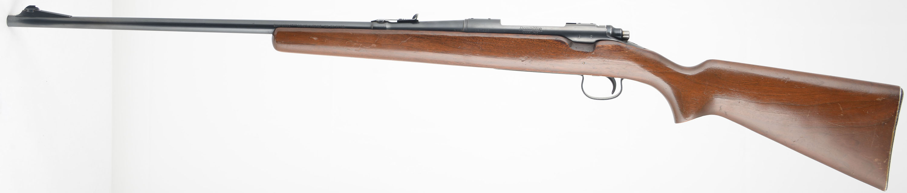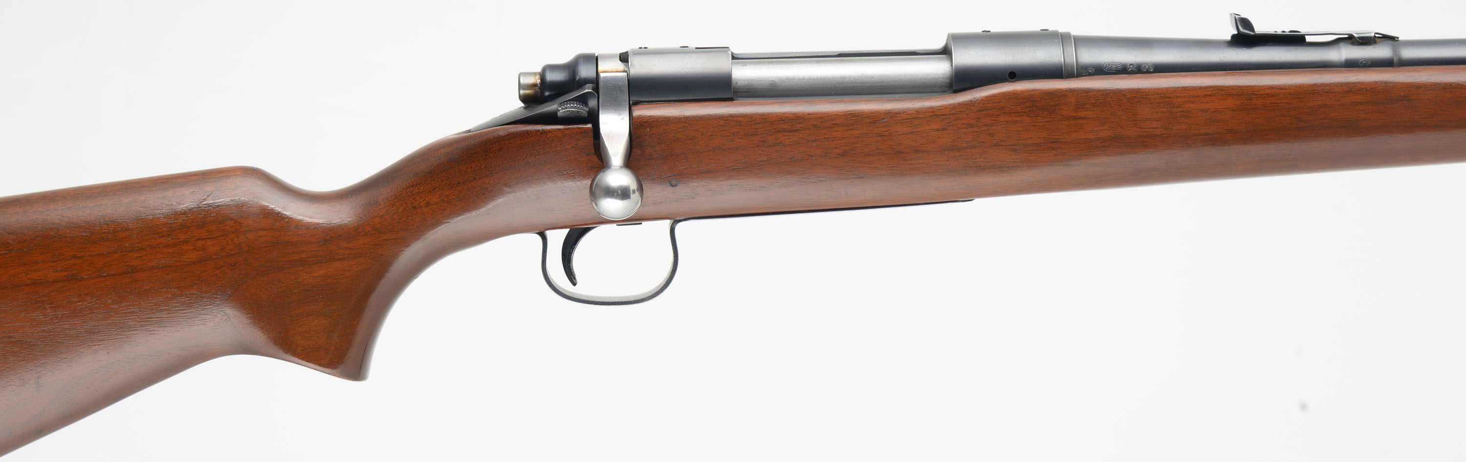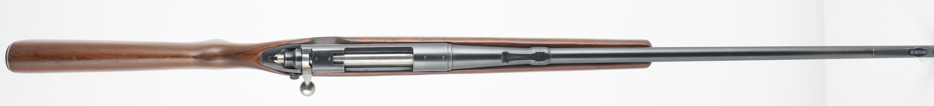 Remington Model 721, CAL: 30-06 SPRG, MFG: 1948-61, SN: 187422, Bolt Action Rifle, 24'' barrel. The original flat pistol grip wood stock is excellent, with several minor scrapes, scratches & contusions to the original finish. There is a spot of touch-up finish to the left side behind the receiver. The metal blue finish rates 80% overall, with some additional thinning on the floorplate. Bore is excellent. The barrel carries the a height adjustable rear & ramped blade front sights. Buttstock carries the correct Remington checkered metal buttplate. A very nice mid century deer hunting rifle. FFL or C&R Req. - Value: 400 to 650