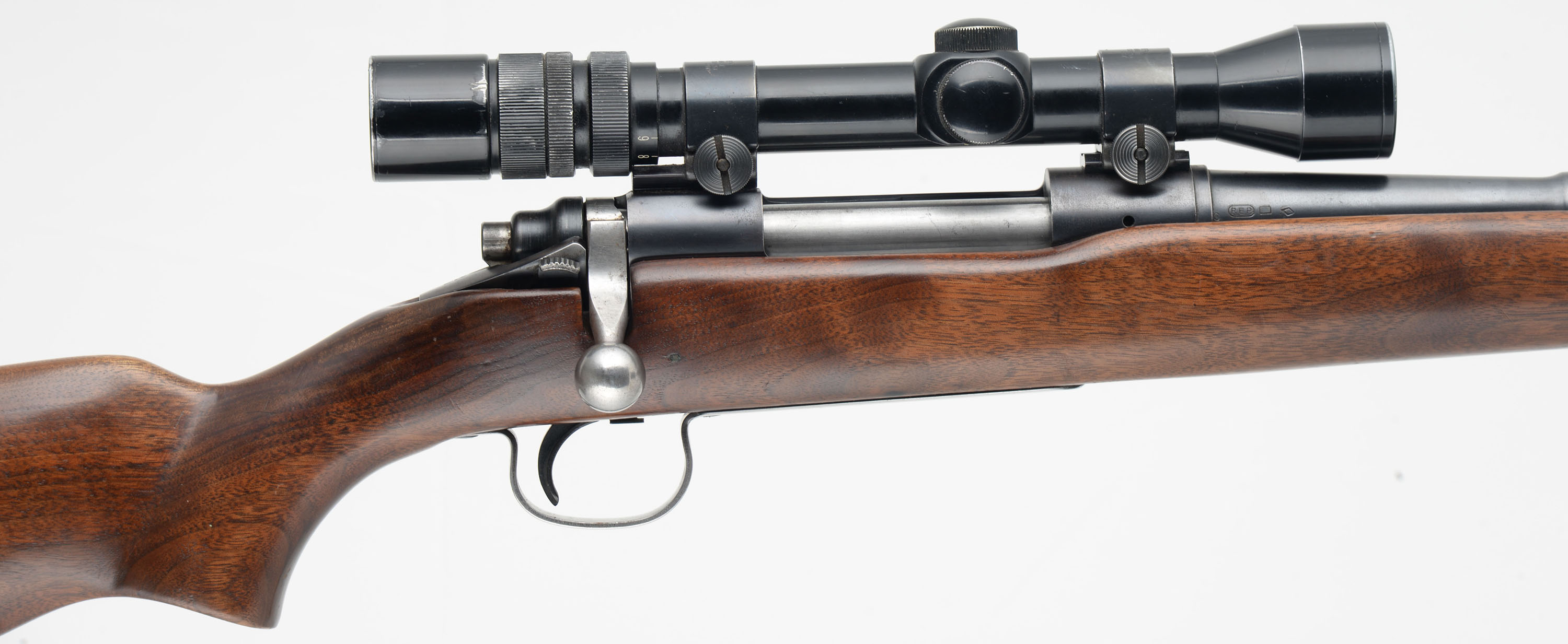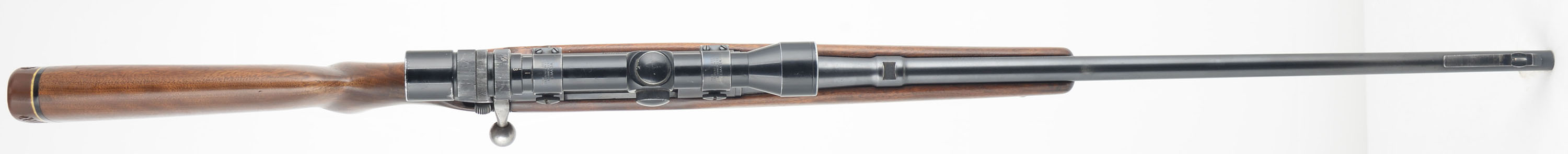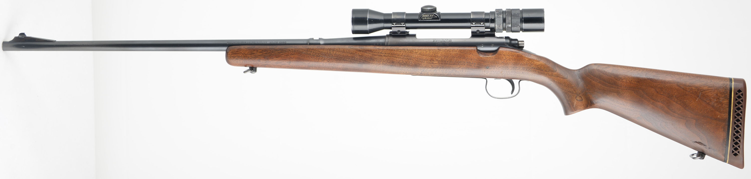 Remington Model 721, CAL: 30-06 SPRG, MFG: 1948-61, SN: 242380, Bolt Action Rifle, 24'' barrel. The original flat pistol grip wood stock is very good, having been lightly sanded & nicely refinished. There remains a few minor scrapes, scratches & contusions. The metal blue finish rates 85% on the barrel, 70% on the receiver. The trigger guard & floorplate are worn mostly gun metal gray, with a thin brown patina remaining. Bore is excellent. The receiver carries a Bushnell Banner 3X-9X scope, while the barrel carries an open rear dovetail & ramped blade front sights. The buttstock carries a Pachmayr ventilated recoil pad. Sling loop. A nicely equipment deer hunting rifle. FFL or C&R Req. - Value: 400 to 600