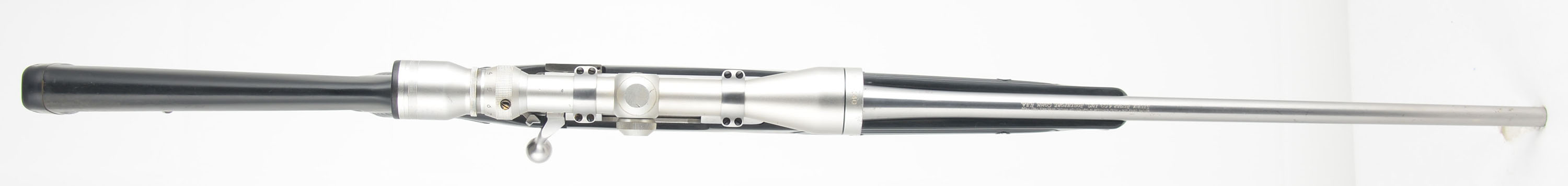 Ruger, Model M77 MARK II, Stainless All Weather, .223 Cal., MFG. 1993, SN: 781-42094, Bolt Action Rifle, 22'' round barrel, The factory Zytel synthetic stock (sometimes referred to as a skeleton or boat/canoe paddle stock) is excellent, but with several minor rubs, mainly located on the right side upper comb by the buttend. The stainless steel surfaces has a satin silver finish, which is excellent, with some fine brush lines & additional rub wear on the floorplate. Bore is excellent. The grooved receiver is fitted with a satin silver matching Tasco 3-9X40 scope, while the barrel has no sight provisions. Factory recoil pad & sling loops, A high quality, all weather, bolt action sporting rifle. FFL Req. - Value: 1000 to 1500