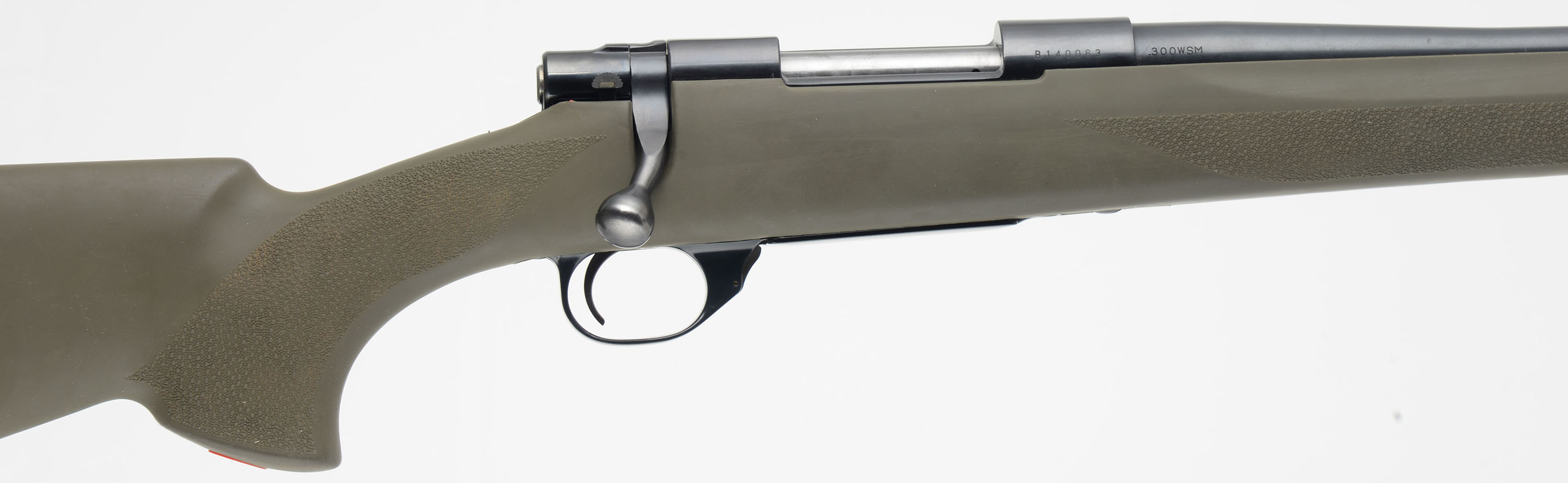 Howa, Model 1500, CAL: 300 WSM, MFG: Modern, SN: B140063, Bolt Action Rifle, 24'' barrel. The original textured & flat pistol grip, synthetic & rubberized soft grip stock is excellent. The original metal black finish rates 95% overall. Bore is excellent. The top of the receiver has four factory hole for future scope mounting, with no sight provisions on the barrel. Stock carries the factory recoil pad. Sling studs. An excellent condition overall hunting rifle. FFL Req. - Value: 400 to 800