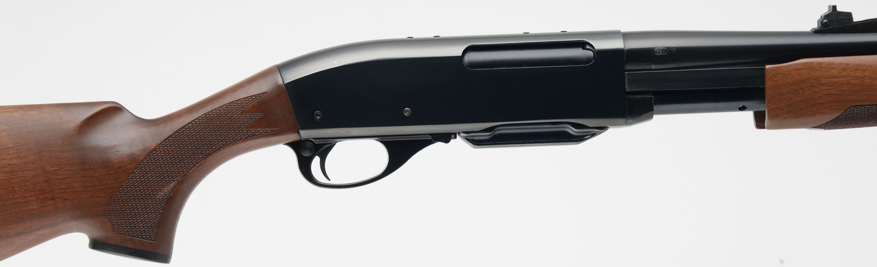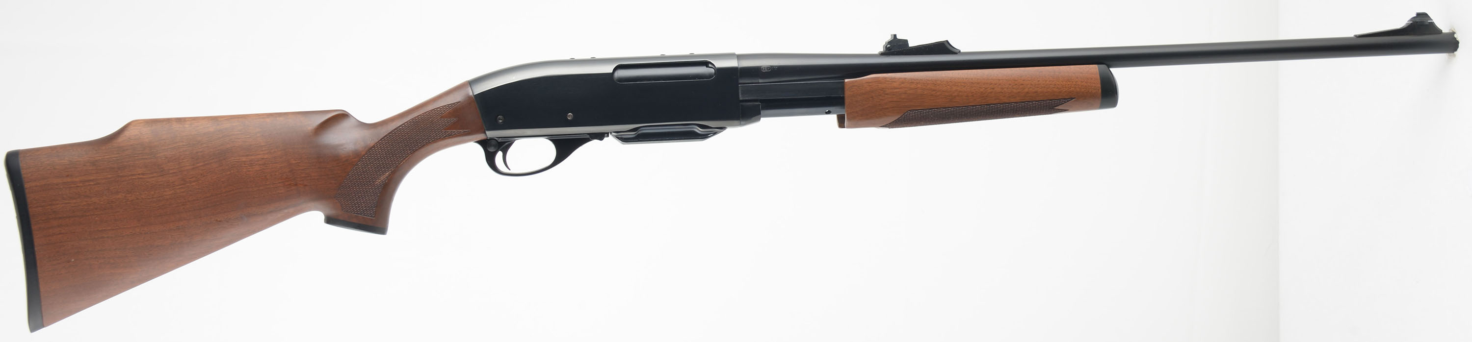 Remington, Model 7600, 35 Whelen Cal., MFG. 1993, SN: B8139949, Pump Action Rifle, 22 1/2'' round barrel, The original factory checkered & capped pistol grip Monte Carlo style wood stocks are excellent, with very few tiny handling marks to the excellent original finish. The original metal blue finish rates 99% overall. The barrel carries the factory rear & front sights. Bore is excellent. Stock carries the original buttplate. Detachable factory mag. An overall excellent pump hunting rifle. FFL Req. - Value: 600 to 1000