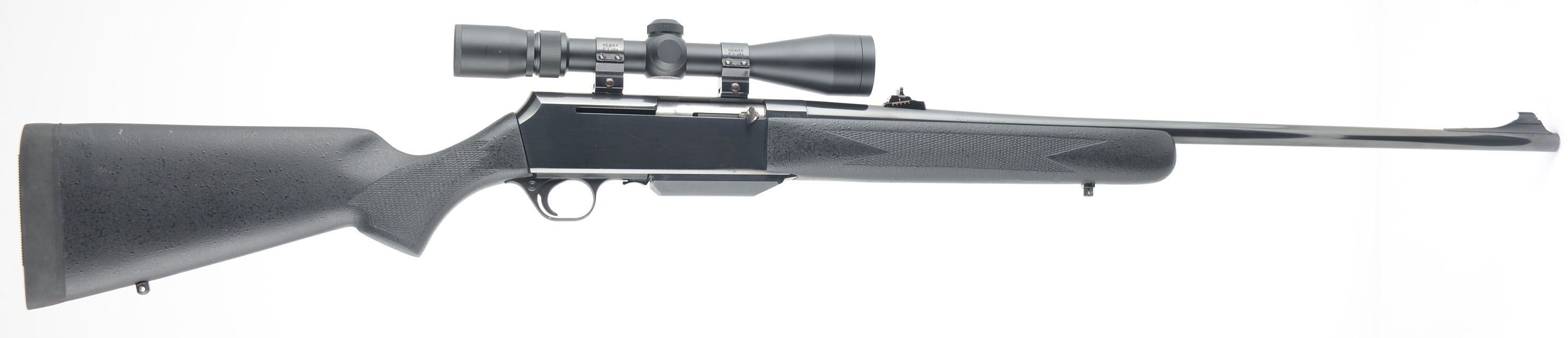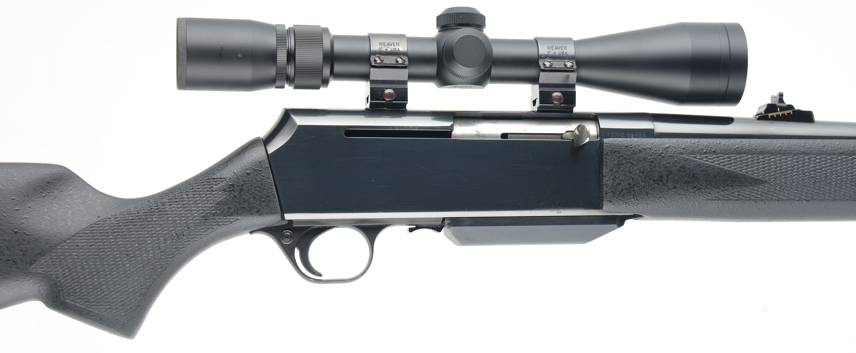Browning, Model BAR, .300 WIN MAG Cal., MFG. 1981, SN: 137PZ02113, Belgium, Semi Auto Rifle, 24'' Round barrel, The upgraded checkered & flat knob pistol grip, Bell & Carlson Carbelite Classic synthetic stocks are excellent, with a handful of small finish level scuffs or scrapes. The original metal blue is high polished finish retained at 95% on the barrel, 90% on the receiver. Bore is excellent, The receiver is fitted with a Nikon 3-9x-40 scope, while the barrel carries a Williams slide adjusting rear sight & ramped blade front sight. Hinged floorplate, with detachable box mag. The stock has sling studs & a Bell & Carlson solid black rubber recoil pad. LOP 14 1/4'' over pad. A great hunting rifle. FFL Req. - Value: 500 to 800