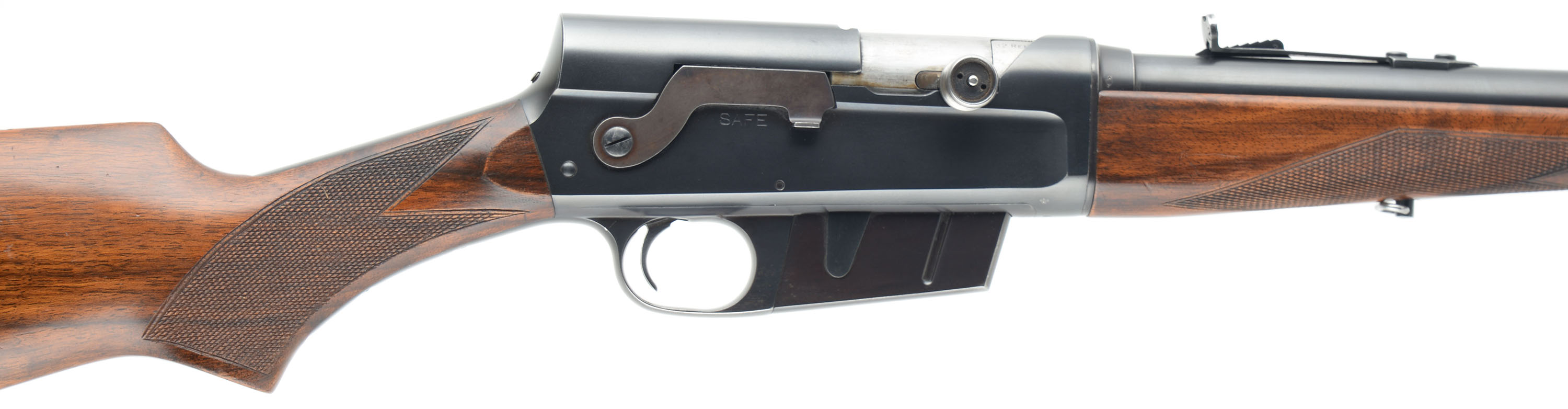 Remington, Model 8 ''C'' Grade (Deluxe), marked .32 Rem Cal., MFG: 1932, SN: 65991, Semi-auto take-down rifle, 22'' barrel, The original deluxe checkered & flat knob pistol grip wood stocks are excellent & solid. The inside of the forend is stamped with a 3 for grade ''3'' or ''C'' grade, & they display hand checkering cut at 20 lines per inch. This is a late production rifle & as a ''C'' grade, the stock still carries the cheeks at the wrist of the early production rifles. There are minor scrapes, scratches & contusions to the original finish, which also has a very thin layer of a protective added layer. The wood appearance is overall excellent. The original metal blue finish rates 95%, with the loss due to some density thinning on the safety, mag & lower tang. Some areas of the blue are starting to tone a lovely plum, which is typical of the late model 8 & early model 81 rifles. The barrel carries the standard adjustable rear & front sights. Bore is excellent, clean & bright. Stock carries the popular serrated lower tang crescent metal buttplate. 5 rd fixed magazine. Tight action. A rare & fantastic original ''C'' grade deluxe rifle, which is highly collectible. FFL or C&R - Value: 2500 to 3000