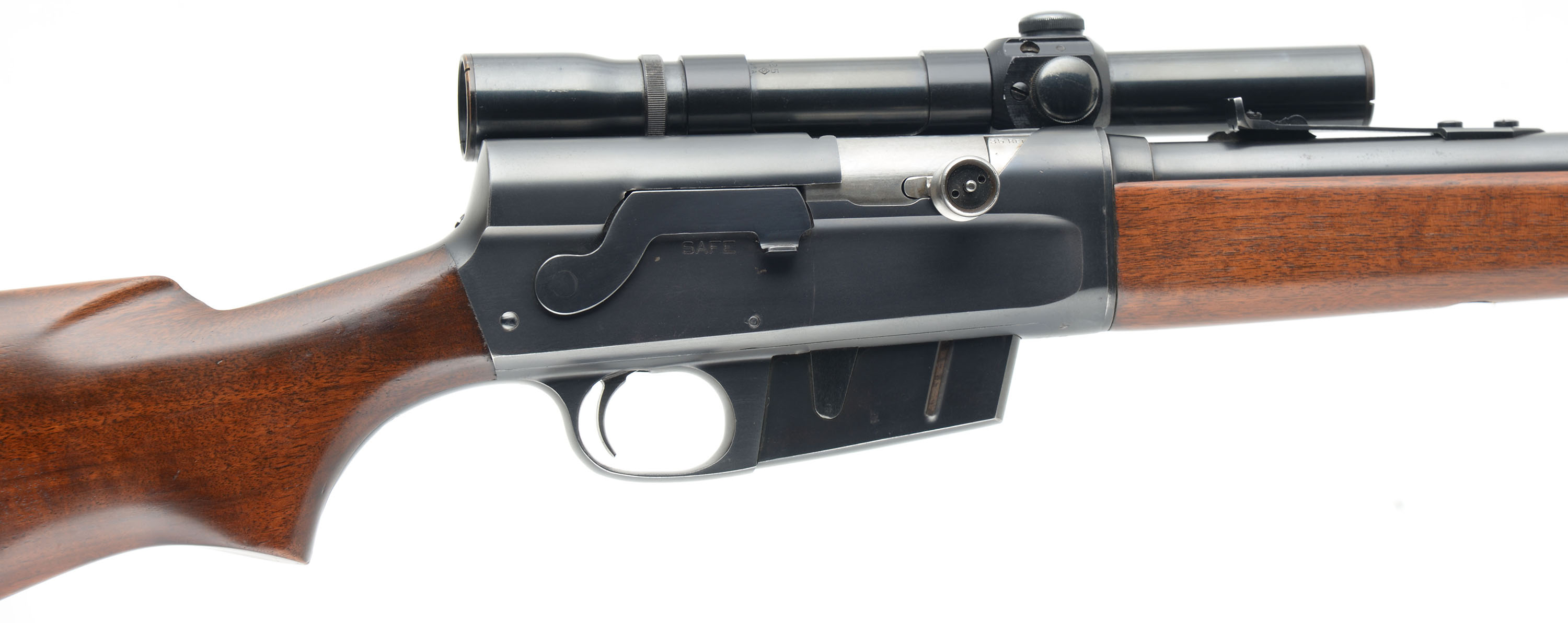 Remington, Model 81, 35 REM CAL, MFG. 1949, SN: 48923, Semi-Auto Rifle, 22'' barrel. The original flat pistol grip wood stocks are excellent & carrying the original finish, with a thin protective added layer. There are very few minor handling marks to the finish. The original metal blue finish rates 95% overall. The receiver is mounted with a Weaver K2.5 scope on Weaver mounts, while the barrel carries standard rear & front sights. Bore is excellent. Stock carries the Remington checkered metal buttplate. 4 rd fixed magazine. Sling studs in wood. An excellent condition rifle nicely set up ready for the hunt. FFL or C&R Req. - Value: 800 to 1200