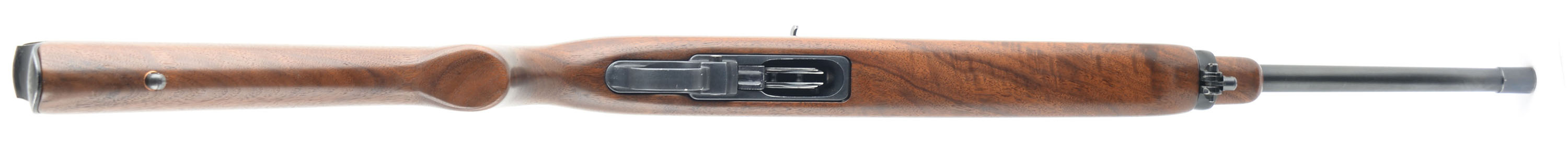 Ruger, Model 44 Carbine, CAL: 44 MAG, MFG: 1966. SN: 107009, Semi Auto Rifle, 18 1/2'' Barrel. The factory wood stock is in excellent condition, solid with light handling wear, scratches, and dings. The blued finish on the barrel and frame rates 97% with some splotches of patina and exposed gun metal grey. Bore is excellent, the rifling is bright and strong. Mechanically solid, seems to function well. The gun has a rear flip up sight and front post sight that are set in dovetail cuts on the barrel. FFL Req. - Value: 700 to 1400