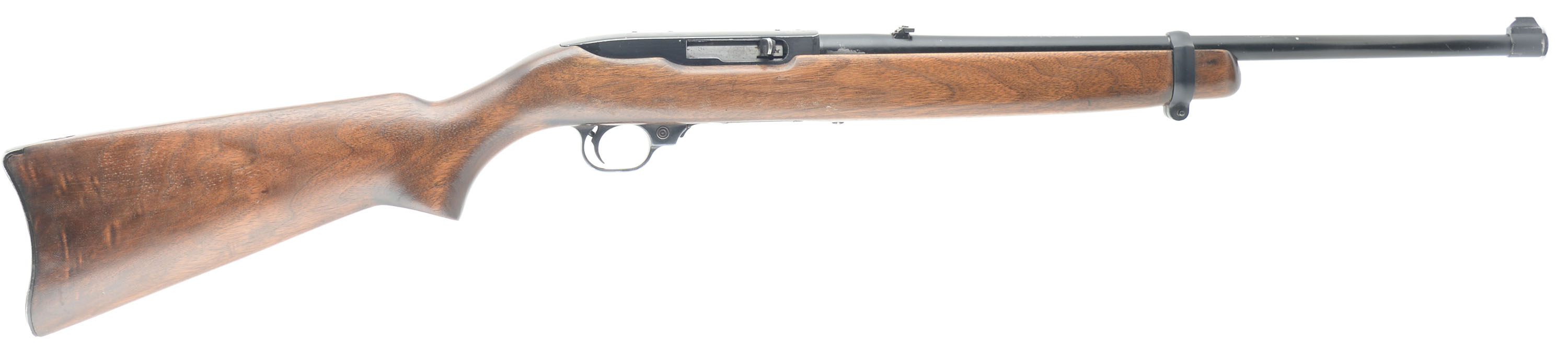 Ruger, 10/22, CAL: 22 LR, MFG: 1971, SN: 110-67282, Semi Auto Rifle, 18 1/2'' Barrel. The factory Ruger wood stock is very good with some handling wear and dings. The black finish on the receiver, butt plate, and barrel is good with some wear flaking. Bore is excellent, the rifling is bright and strong. Mechanically solid, seems to function well. A flip up elevation adjustable rear sight and fixed front sight are set in dovetail cuts on the barrel. Comes with a 10 round Ruger 10/22 magazines. FFL or C&R Req. - Value: 200 to 600