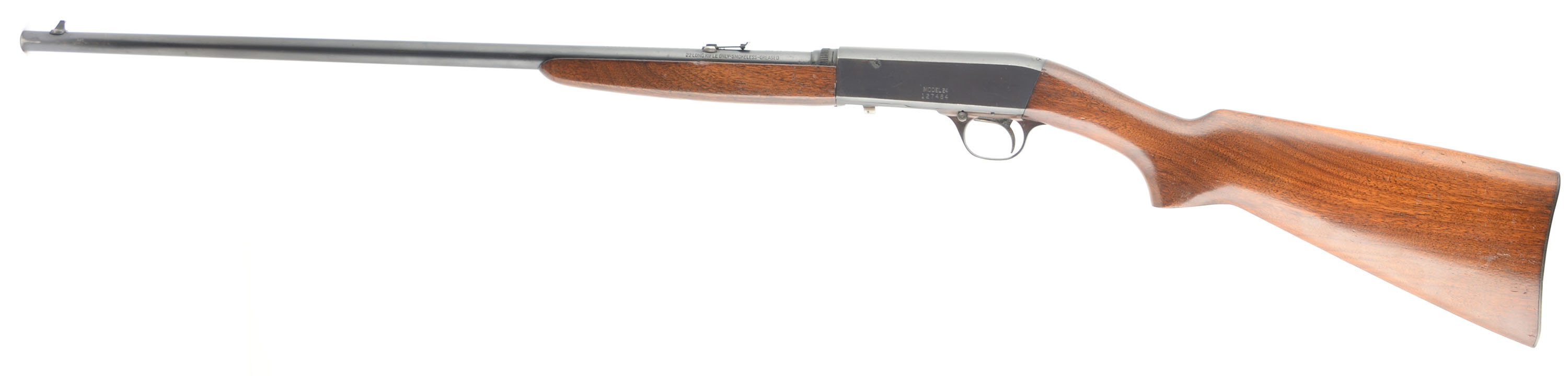 Remington, Model 24 Take-down, Marked .22 LONG RIFLE ONLY Cal., MFG 1922-35, SN: 127464, Semi Auto Rifle, 21 1/4'' round barrel. The original wood stocks are excellent, with minor contusions, nicks & scrapes to a combination of the original finish & an added thin layer of finish. The original metal blue finish on the barrel rates 90%, while the receiver finish rates 80%. Side of receiver & barrel are stamped with matching SN's. Bore is excellent & bright. Fitted with the original metal buttplate. Original factory sights. A fun to shoot semi-auto rifle. FFL or C&R Req. - Value: 300 to 600