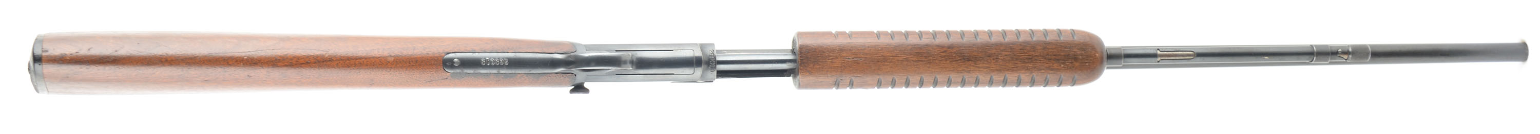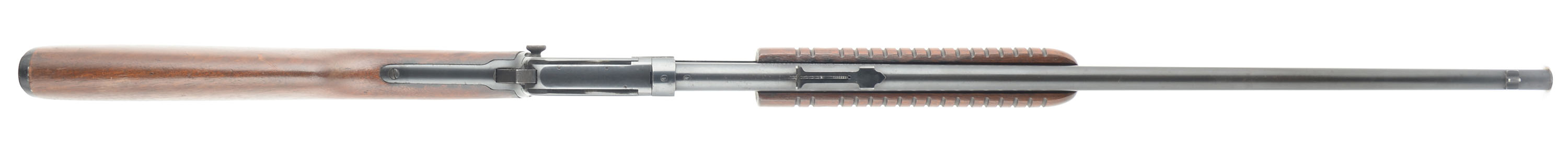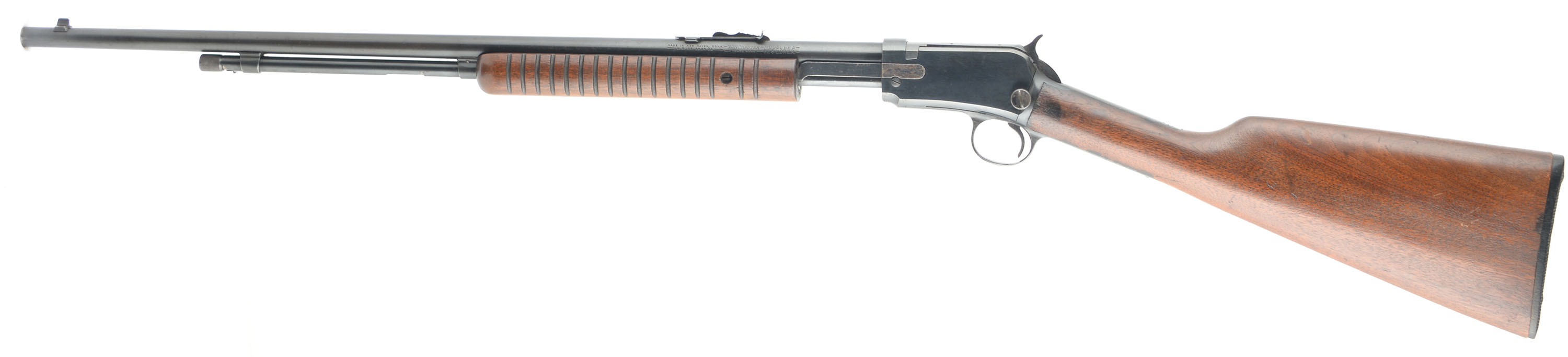 Winchester, Model 62A, CAL: 22 S.L.LR, MFG: 1949, SN: 269019, Pump Action Rifle, 23'' barrel. The original straight grip wood stock & corncob style forearm are excellent, with light contusions, surface scrapes & scratches to the original factory finish. There is some black staining & spotting to the wood. The original metal blue finish rates 70% overall, with some speckling & cleaned light pitting. Bore is excellent. The barrel holds an adjustable rear & blade front sights. Buttstock carries a Winchester marked, checkered black plastic buttplate. Overall appearance is very good. FFL or C&R Req. - Value: 600 to 1000