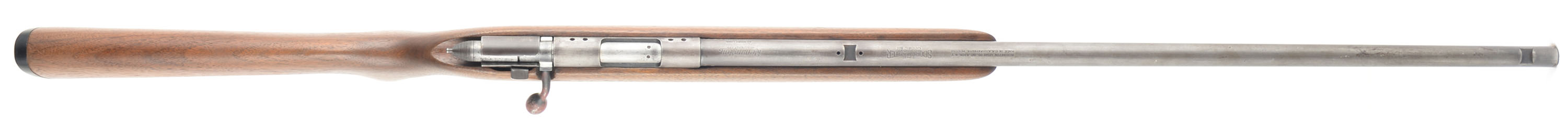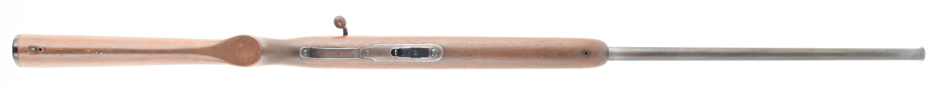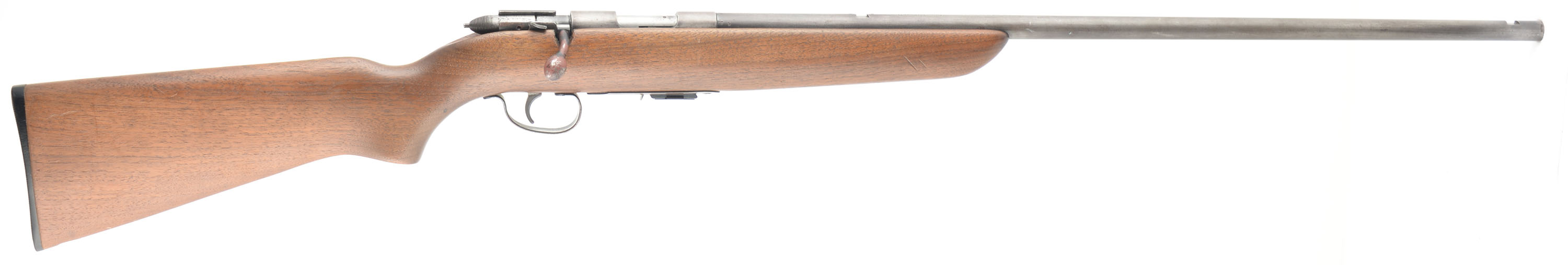 Remington, Model 511 Scoremaster, 22 S. L. LR, MFG: 1939-62, SN: NONE, Bolt Action Mag Fed Rifle, 25'' round tapered barrel. The original flat pistol grip stock is excellent, with several minor surface scrapes, scratches or contusions to the original finish. The original metal blue finish has worn or buffed mostly to gun metal gray, with areas of a thin brown patina. Bore is excellent. The receiver has four open holes on the left side from previous scope mounting, while the barrel has open dovetails from missing front & rear sights. The stock carries the original buttplate. Bolt handle has remains from previous spray paint. Open holes in stock from missing sling studs. ''R'' marked detachable mag. FFL or C&R Req. - Value: 100 to 200