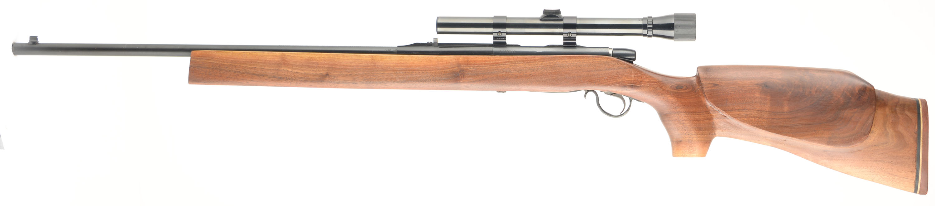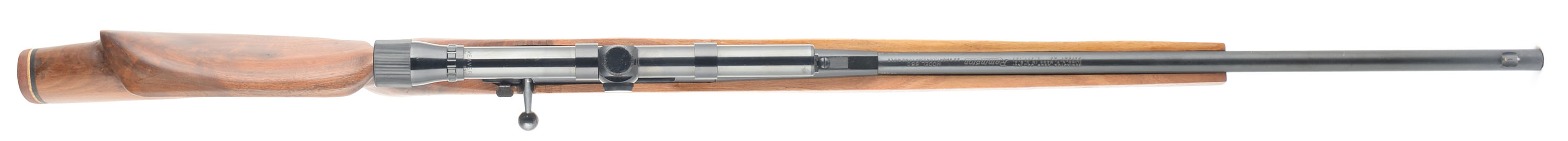 Custom Remington, Model 580, .22 S. L. or LR Cal., MFG. 19757, SN: 1215575, Bolt Action Single Shot Rifle, 24'' round barrel. The customized replaced, high comb, dished cheek & flat pistol grip wood stock is excellent., with very few handling marks to the excellent finish. The original metal blue finish rates 95% overall, with some light speckling. Bore is excellent. Fitted with a Weaver D6 scope & factory open sights. Solid rubber recoil pad. FFL or C&R Req. - Value: 200 to 400