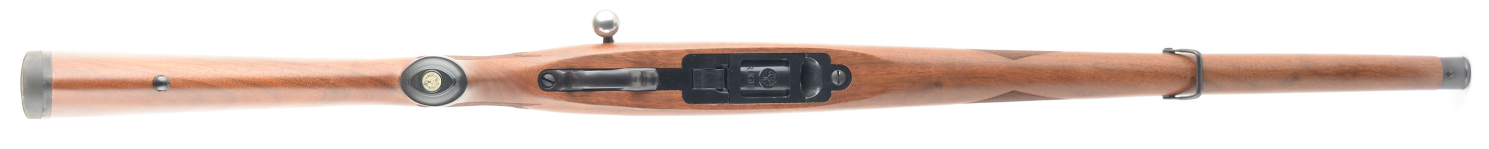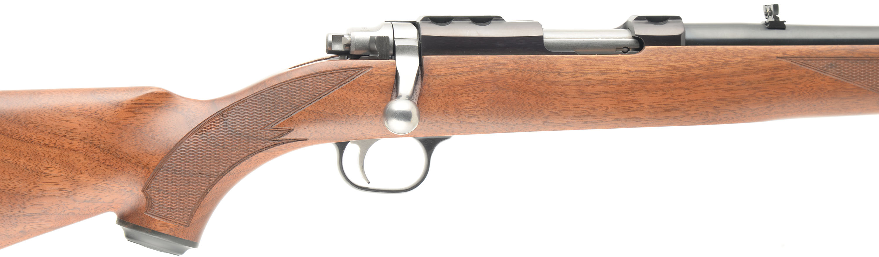 Ruger, Model 77/22, CAL: 22 WIN MAG., MFG: 2014, SN: 703-75408, Bolt Action Rifle, 18.5'' barrel. The original checkered & Ruger logo capped pistol grip Mannlicher style walnut stock is excellent, with virtually no handling marks to the original excellent finish. The original metal blue finish rates 99% overall, with the receiver toning the typical Ruger plum. Bore is excellent. The receiver has integral scope mounts machined directly into the solid steel receiver, while the barrel carries a folding leaf rear & factory front sights. Buttstock carries a Ruger logo solid rubber recoil pad. Sling studs. Factory detachable mag. Excellent overall. FFL Req. - Value: 600 to 800