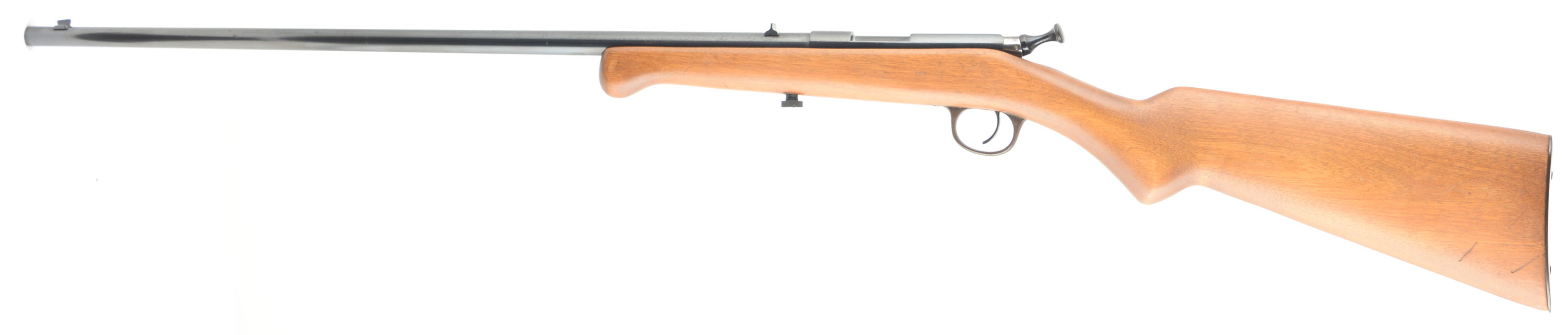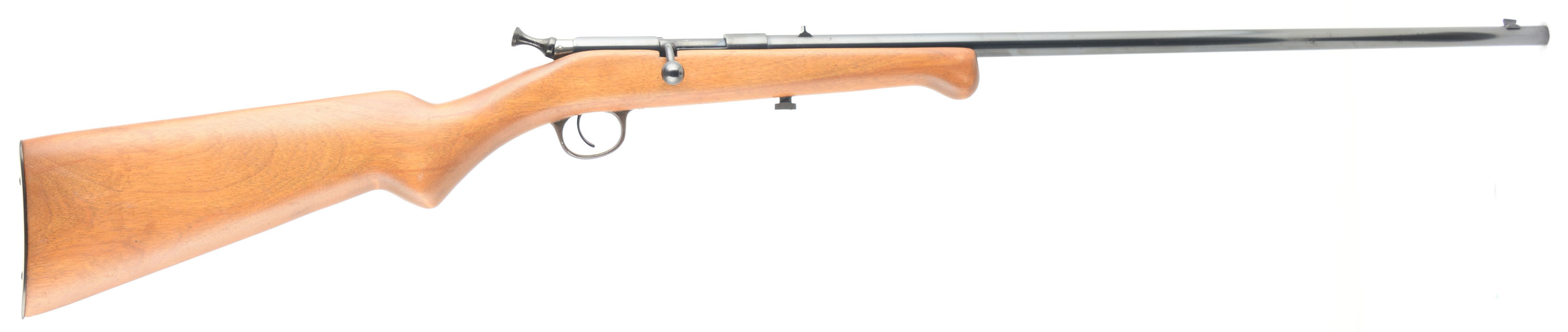 Iver Johnson, Model X Safety Bolt Action, CAL: 22 S.L.LR, MFG: 1928, SN: 14437, Bolt Action Rifle, 22'' barrel. This rifle has been fully restored. The flat pistol grip wood stock is excellent, having been sanded & very nicely refinished, with few minor handling marks remaining. The restored metal blue finish rates 85% overall, but with speckling. Bore is excellent. The barrel holds a fixed blade rear sight & blade front sight. Stock carries a smooth metal buttplate. This nicely restored gun presents very well. FFL or C&R Req. - Value: 100 to 200