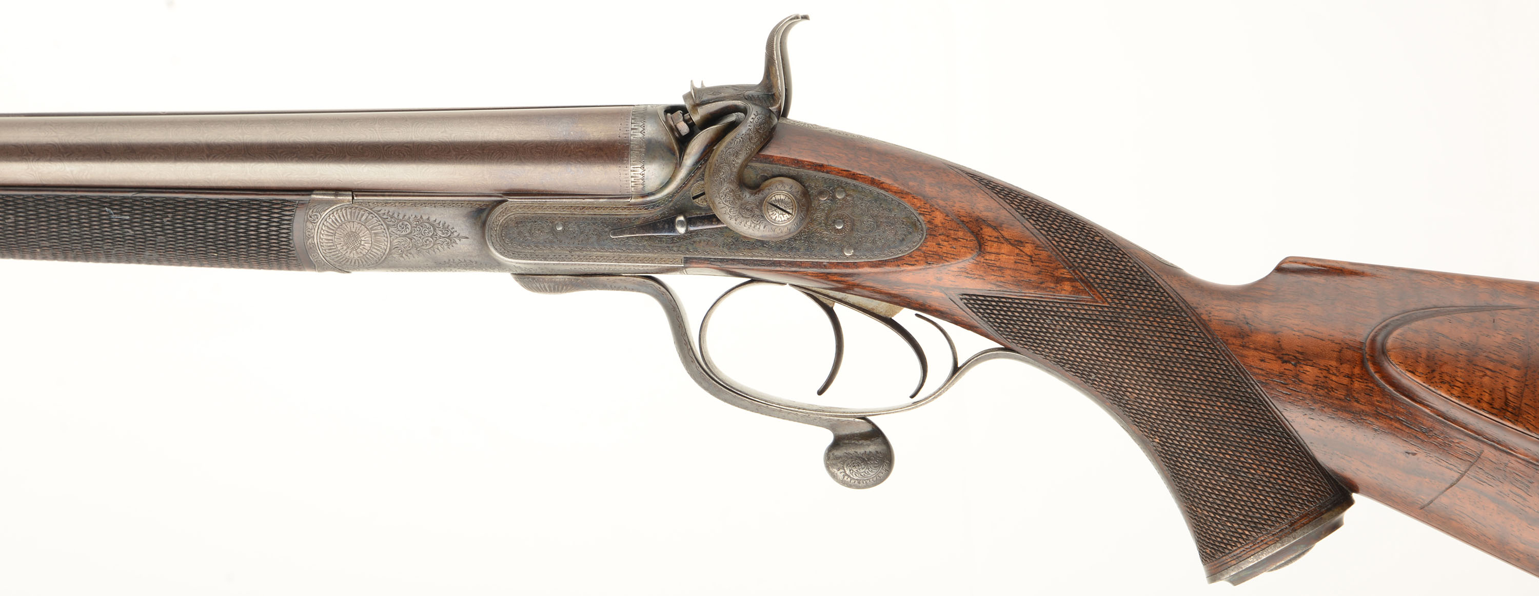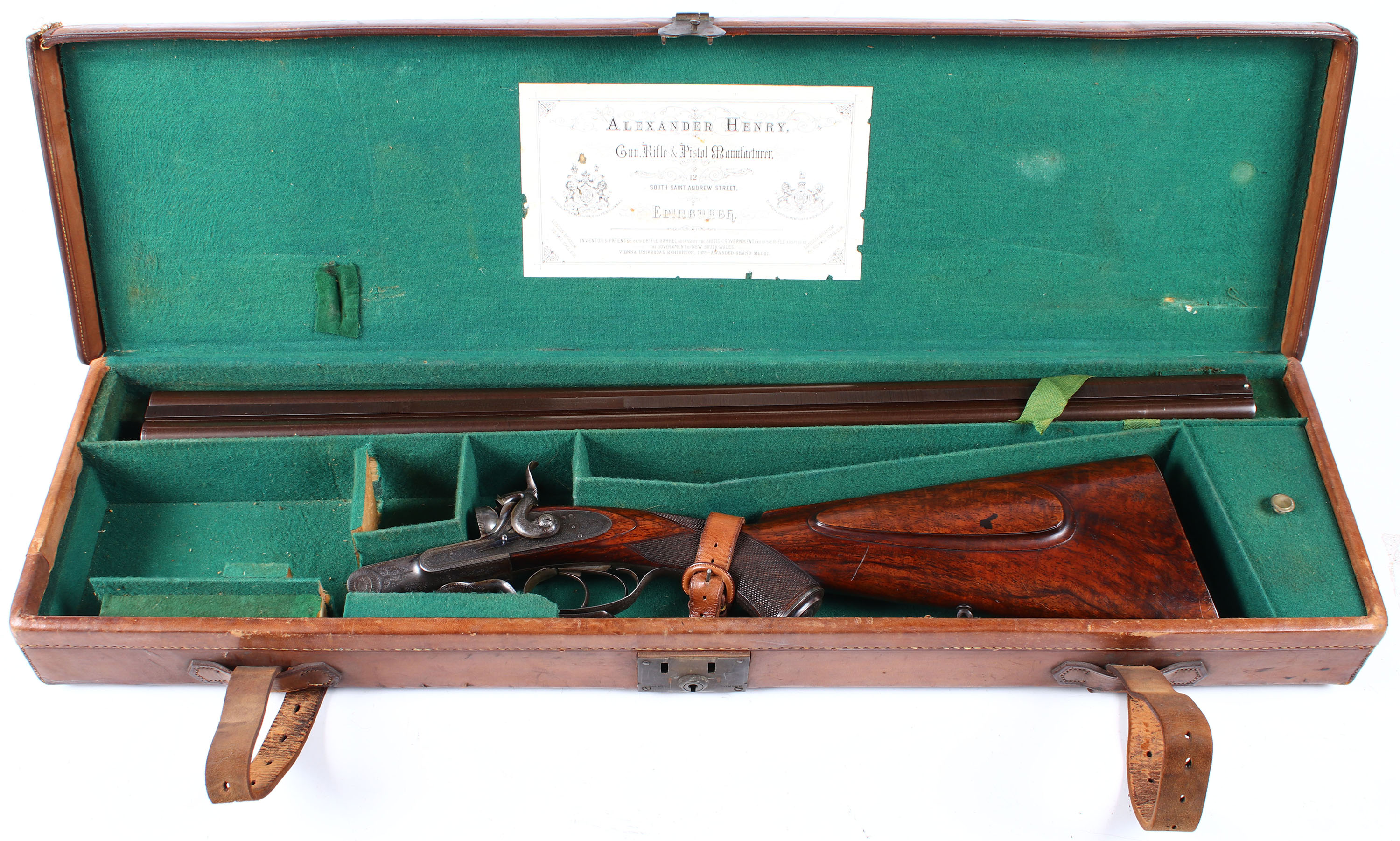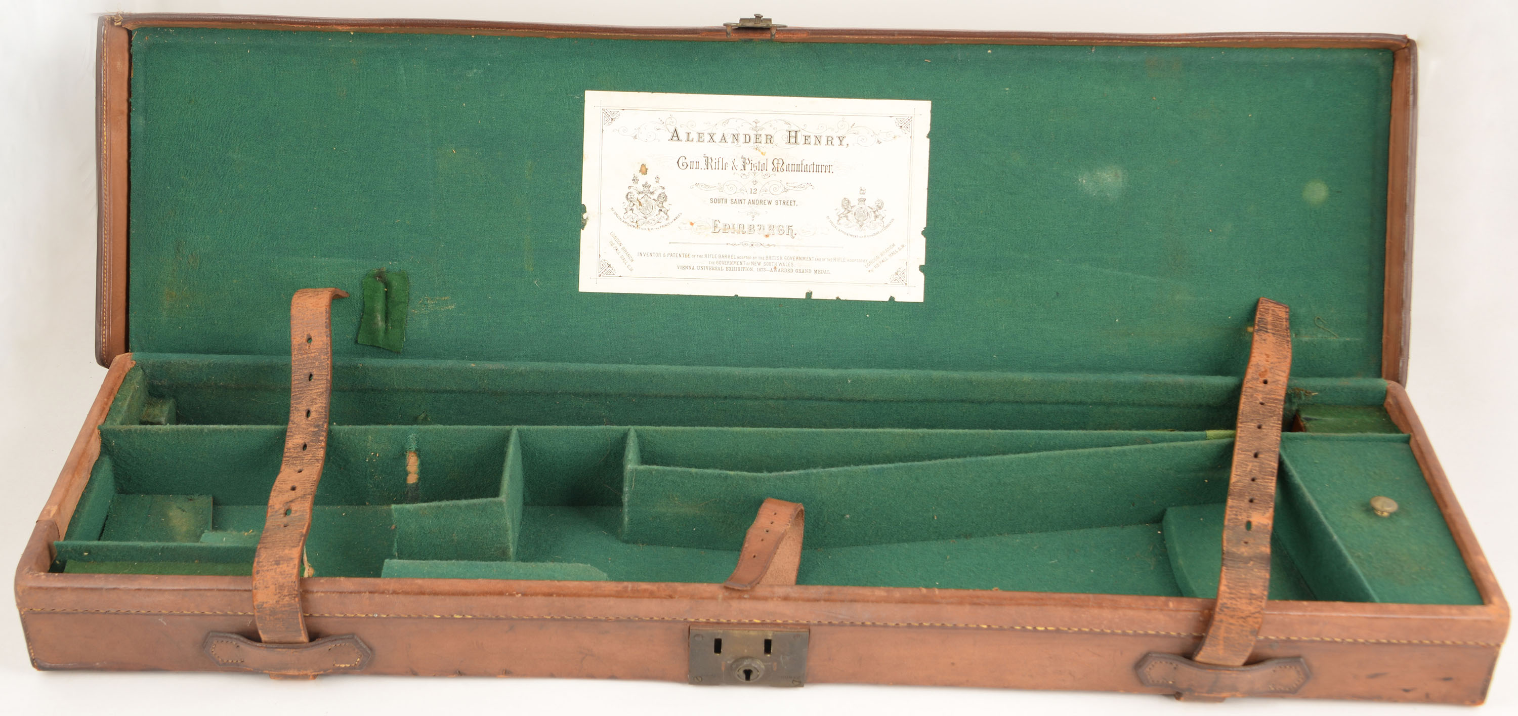 HISTORY: While his name is now best associated with the British Empires Martini-Henry rifles & carbines, Alexander Henry of Edinburgh was a well respected Scottish gunmaker, officially appointed as maker to Her Majesty the Queen, The Prince of Wales, The Duke of Edinburgh & other individuals of royalty & wealth. In the mid to second half of the 19th century, Henry patented his drop block rifle in 1865 & of its type, it was by far the most successful & commonly encountered rifle of the era. Henry offered his rifle in three qualities, ''BEST'', ''SECOND'' & ''THIRD'', with best quality pre-dominating. This appears to be of the ''BEST'' quality as it displays the engraving & detailing seen on his other ''BEST'' quality examples. These A.H firearms are quite magnificent in terms of their quality, engraving & construction. Henry has secured his reputation with very high quality craftsmanship.