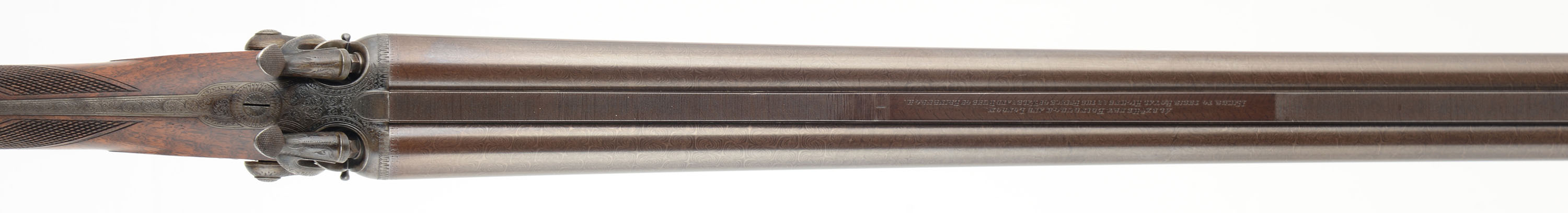 MARKINGS: The top of the barrel rib is marked ''ALEX.R.HENRY EDINBURGH AND LONDON. MAKER TO THEIR ROYAL HIGHNESS' THE PRINCE OF WALES AND DUKE OF EDINBURGH''. Both side plates are marked ''ALEX.R. HENRY''. The SN is marked on the lower tag & on the water table. There are various proof marks & factory markings on the barrel/water table.