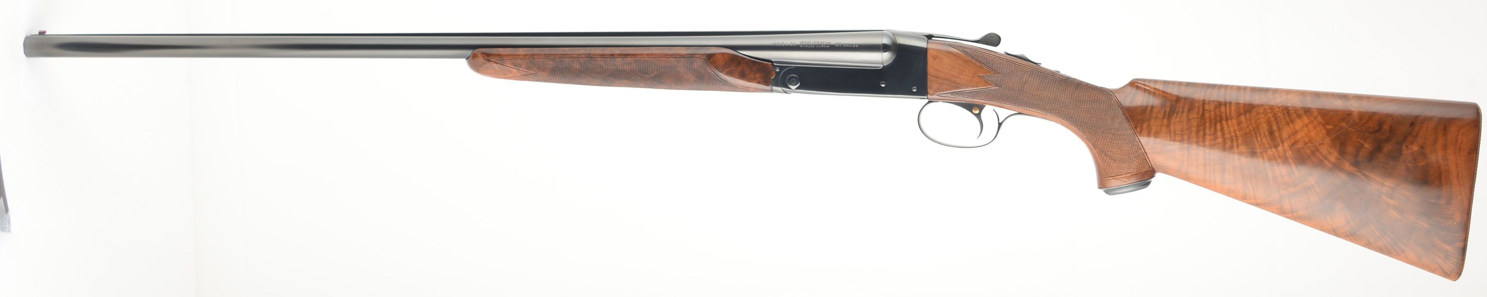 HISTORY: The Winchester Model 21 is widely viewed as one of the most elite American boxlock double guns ever produced. It was technically a production gun until 1960, but each Winchester Model 21 was custom-crafted. The Winchester Model 21 was developed to compete not only with luxury American shotguns offered by companies like A.H. Fox & Parker Brothers but to rival the English side by sides too. British sportsmen preferred lighter weight & lighter loads. The Model 21 was engineered for power & durability.