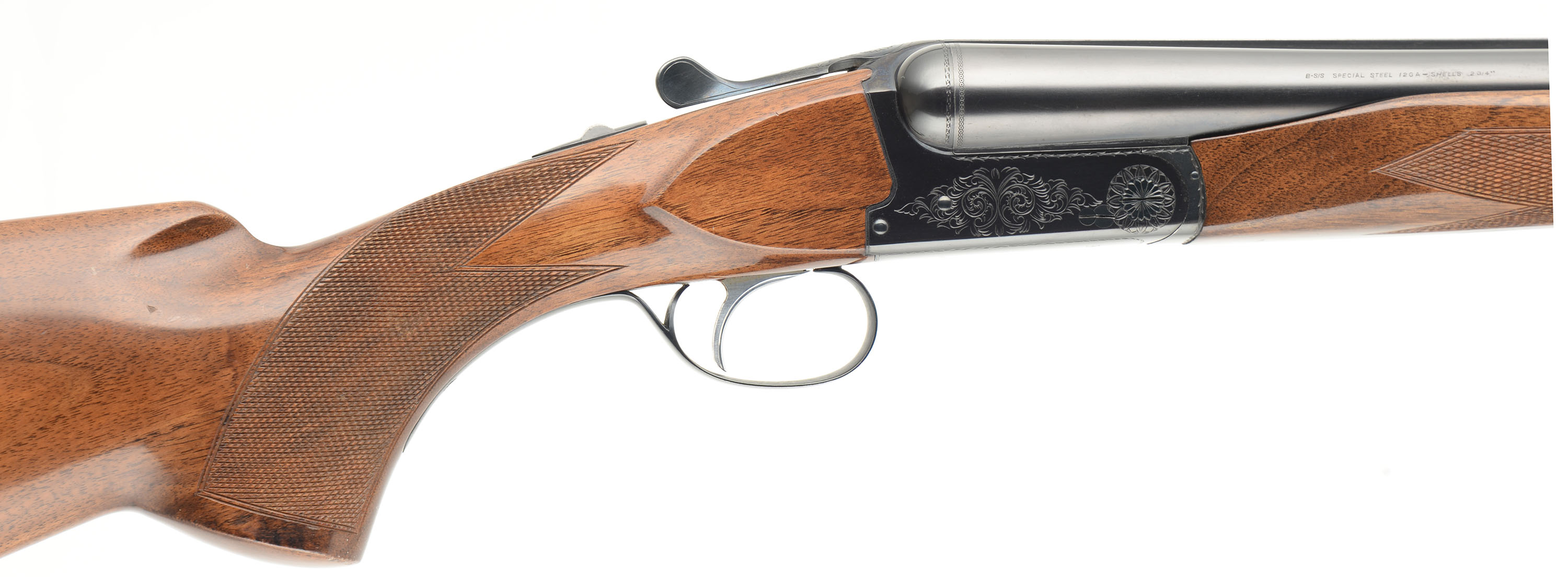 Browning, B-S/S, CAL: 12GA, MFG: 1972, SN: 5840A72, Break Action SxS Shotgun, Choke: IC/F, 2 3/4'' Chamber, 28'' barrels. Standard factory markings on the barrel, receiver & water table. The original checkered flat pistol grip stock & beavertail forend are excellent. There are only minor handling marks to the high gloss finish & a couple dings to the forend checkering. The original metal blue finish on the barrels rates 95% & the receiver rates 98%. The receiver has simple roll stamp engraving. Bores are excellent. The solid matted rib holds a single front bead. Stock carries a ventilated black rubber recoil pad. Single trigger with selector. Mechanically excellent. FFL or C&R Req. - Value: 1000 to 1700