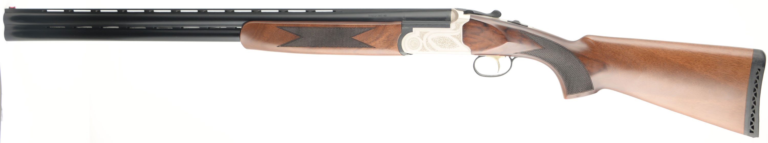 BOXED, Tristar, Hunter Ex, CAL; 12GA, MFG: Modern, SN: AR12008008, Break Action O/U Shotgun, Choke: IM/IM, 3'' Chamber, 26'' barrels. Standard factory markings., The original checkered flat pistol grip wood stock is excellent. The original metal blue finish on the barrel rates 99% overall. The lase engraved coin silver receiver is excellent. Bores are mint. The solid, matted rib holds a red fiber optic rail front sight. Stock has a ventilated black rubber recoil pad with a small missing piece at the toe. Mechanically excellent. Comes in factory box. FFL Req. - Value: 300 to 500