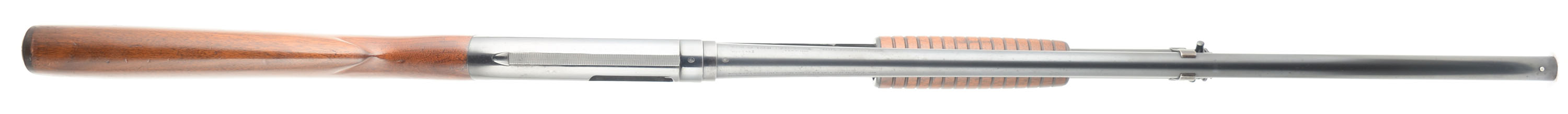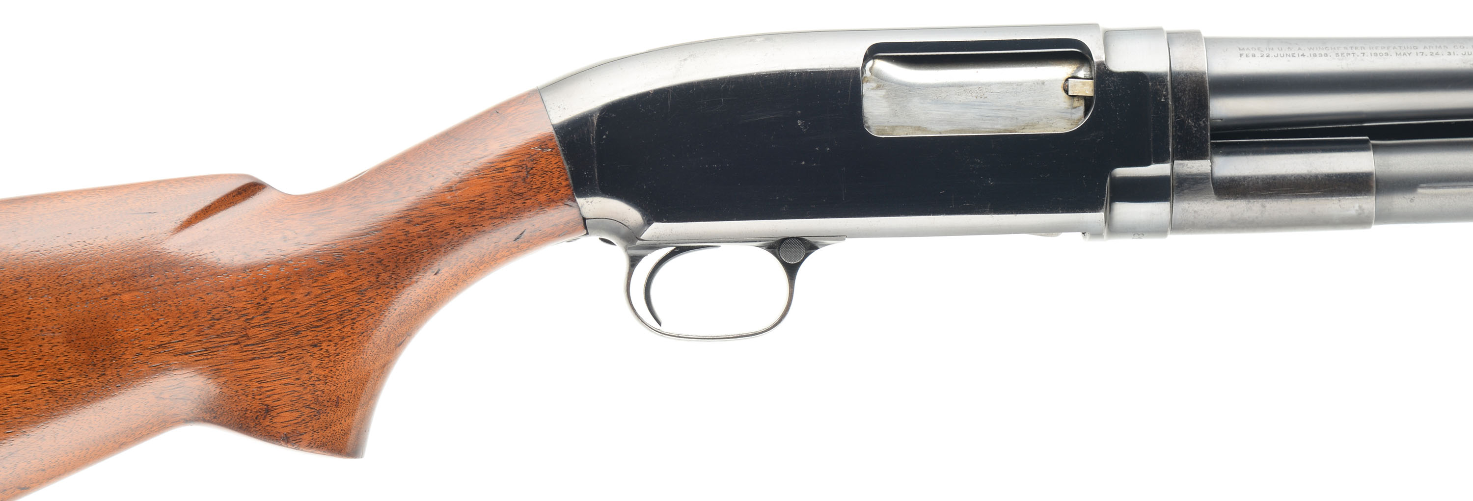 Winchester, Model 12, 16 Ga., MFG. 1951, SN: 816691, Pump action. Marked FULL Choke, 2 3/4'', 26'' barrel, The original flat pistol grip wood stocks are excellent, with a few minor handling marks, scratches & light contusions to the excellent original finish. The original metal blue finish rates 95% on the barrel, 90% on the receiver & mag tube. Bore is excellent. Single front bead. Stock carries the original Winchester Checkered plastic buttplate. 14'' LOP. Excellent overall & collector's condition. FFL or C&R Req. - Value: 1000 to 1500