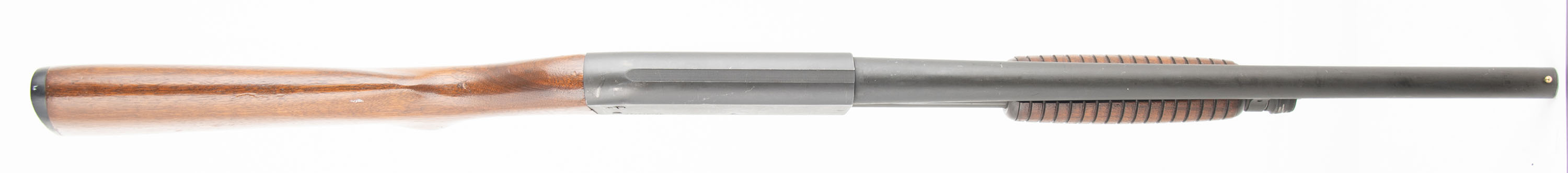 Ithaca, Model 37 Featherlight, CAL: 12 GA 2 3/4'', MFG: 1995, SN: 371716730, Pump Action Shotgun, Choke: Cyl, 18 1/8'' Barrel. The original flat pistol grip wood stocks are very good, with some small dings & scratches throughout. There are a couple of small edge chips on the bottom of the pistol grip. The finish is a combination of original finish with an added layer of finish. The parkerized metal finish is very good, with some minor scratches, dings and scuffs. The magazine tube shows expected use wear. Bore is very good. The barrel holds a front bead sight, the top of the receiver has serrations to reduce glare. The stock has a Ithaca checkered plastic buttplate. Mechanically solid, seems to function well. LOP is 14 1/8''. FFL Req. - Value: 300 to 600