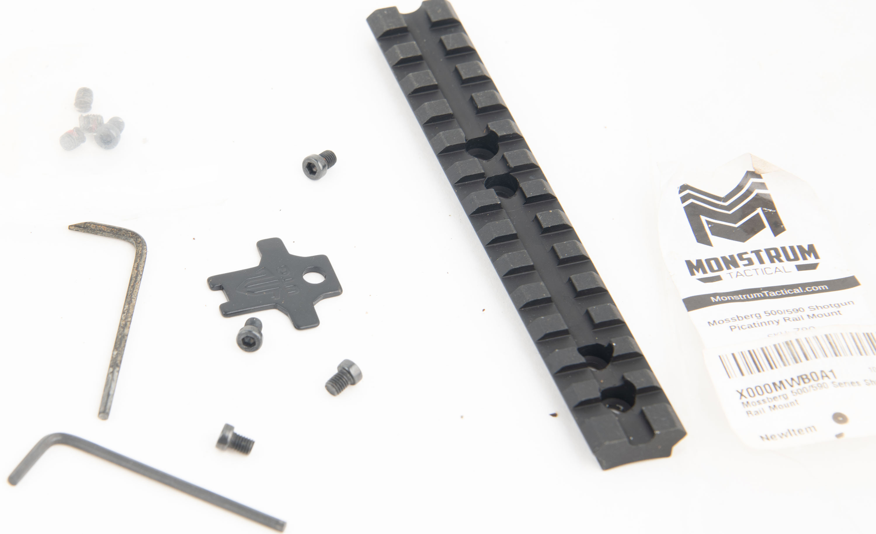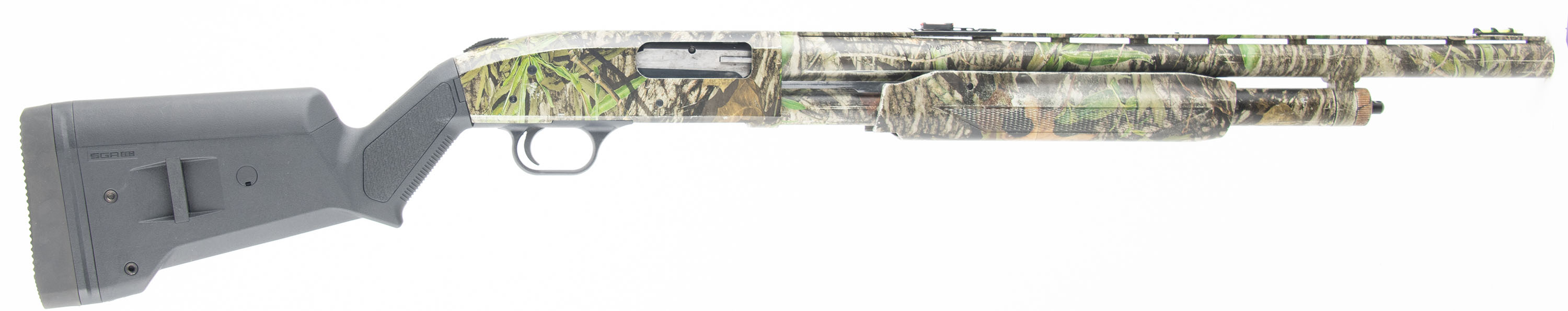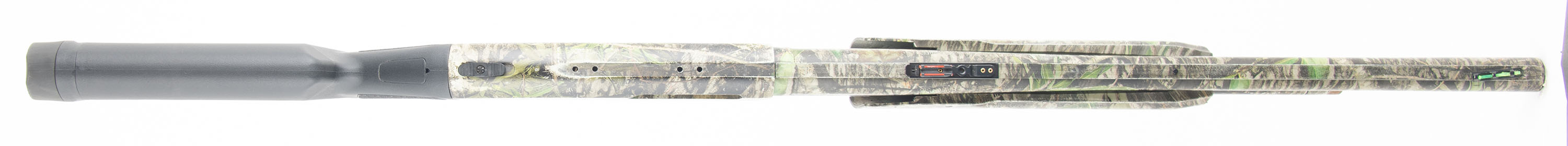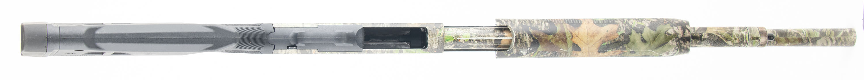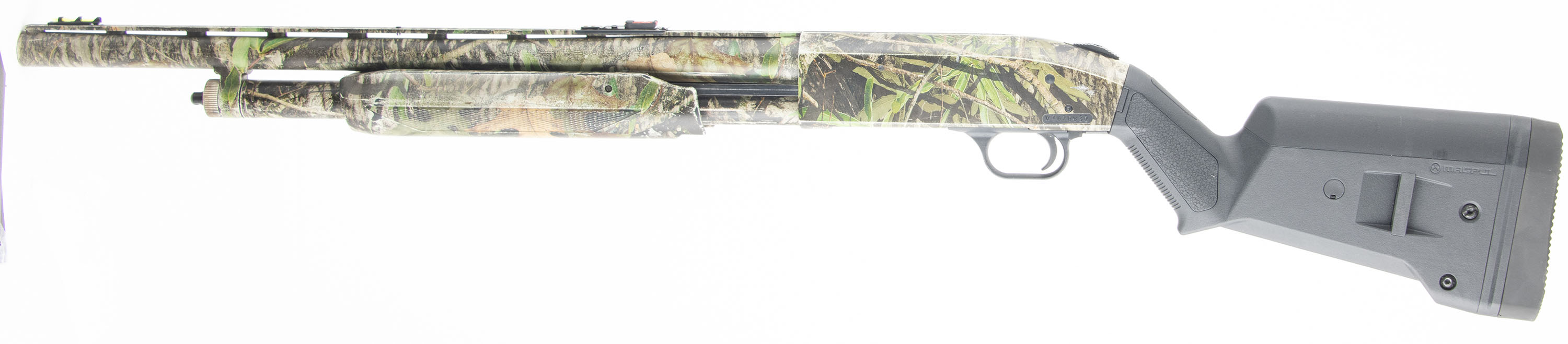 Mossberg, 500, CAL: 12 GA 2 3/4'' or 3'', MFG: Modern, SN: V1070832, Pump Action Shotgun, Choke: Thread in Choke (IMP CYL), 20'' Barrel With a Ventilated Rib. The plastic stock and forend are in very good condition, solid with some wear. The camo wrap is very good with some wear. Bore is excellent, very bright and smooth. Mechanically solid, seems to function well for the most part. The safety does get stuck if you pull it to either side but does function. The ventilated rib holds 3 dot fiber optic sights, the fiber optic tube is loose in the front sight. The stock has an integral sling loop on either side, the end cap of the magazine tube has a sling stud. The stock has an extension and a recoil pad. Comes with a Monstrum picatinny rail for the Mossberg 500/590. LOP is 12 1/4'' over pad. FFL Req. - Value: 200 to 400