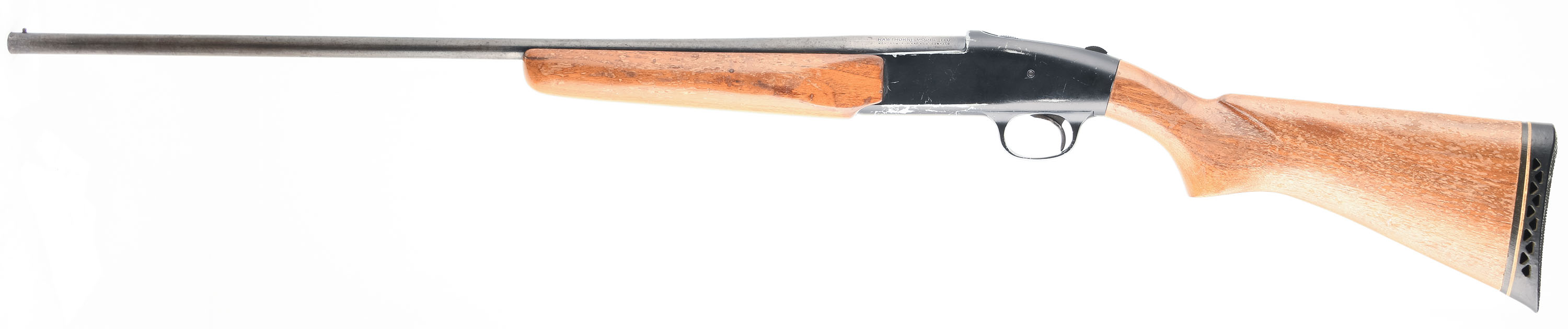 Hawthorne-Montgomery Ward's, Model 110 (EJW-110), CAL: 410 GA 3'', MFG: 1950's-60's, SN: None, Tip Up Single Shot Shotgun, Choke: Marked Full (Measures Imp Mod), 26'' Barrel. The wood stock and forend are good solid with some chips, dings, and scratches. The glossy finish has worn thin leaving some exposed wood. The black finish on the receiver has worn away on some of the edges and corners exposing gun metal grey. The blued finish on the barrel has worn and toned to a mix of original blue, brown patina, and gun metal grey with light rust speckling. Bore is excellent, bright with light roughness near the chamber. Mechanically solid, seems to function well. The barrel holds a front bead sight. The stock has a ventilated and textured hard plastic buttplate. LOP is 12 1/2''. FFL or C&R Req. - Value: 80 to 160