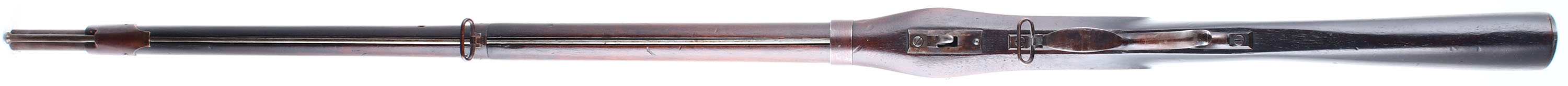 CONDITION: The straight wrist walnut stock is very good near excellent with some minor nicks, dings, & dents. Stock has darkened from added oils & age. The top of the wrist has a arsenal repair where the stock split from incorrect disassembly technique (common problem with the rifle). The left side of the stock by the rear of the receiver is stamped ''WAT'' in box, these are the initials of inspector William Anderson Thorton, he was the commander of the New York Arsenal & later the Water town arsenal from 1841-66, he oversaw the factory when it was converted to percussion. The metal was re-finished when it was converted. The case-hardened finish on the breech block rates 90% with wear around the nipple & at the top from closing the breech. The browning finish on the barrel & receiver rates 87% with spots of thinning & scratches. The top of the breech block is marked ''J. H. HALL'', ''H FERRY'', ''US'', ''1832''. The inside of the buttplate is marked ''IX P'' this is the first style conversion mark. The bore is excellent. It's bright & shiny with strong rifling but it does has a couple spots of light roughness nearing the end of the muzzle. The bore is smooth the last 1'', this was done to help load from the muzzle in a emergency if the breech could not be opened. The barrel holds a square blade sight with a fixed V-notch rear sight. Rifle has both bottom sling loops & the ramrod. A Beautiful example of a Arsenal re-finished Hall Rifle Antique, No FFL Req. - Value: 3000 to 6000