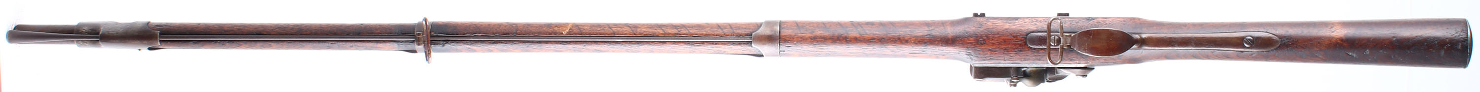 HISTORY: The M1840 Musket was the last of the US Flintlock muskets before the M1842 introduced the percussion lock. The vast majority of the M1840 muskets would be converted into percussion before they were even issued & some late production M1840s would be assembled with a percussion converted locks. Around 30,000 M1840's were produced at Springfield & almost 27,000 of those were converted to percussion at the factory. Two other manufacturers also made M1840 muskets, Daniel Nippes Company made just over 5,000 & delivered them 1842-48. Lemuel Pomeroy made around 7,000 & were delivered from 1840-46. Most of those were converted to percussion as well. The M1840 improved on the M1835 by having a longer bayonet with a retaining clasp, & had a comb in the stock making the rifle easier to aim. They were also made with thicker barrels in anticipation of rifling the barrels later on & they were correct, most of them were bored with rifling later on. There are mentions of these being re-converted to flintlock later on for collectors, but this musket appears to be one that escaped both percussion & rifle conversions & is its original configuration.