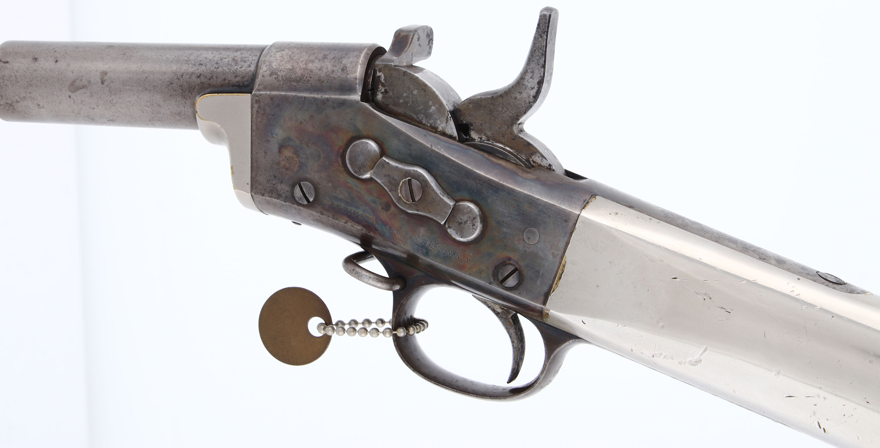 ULTRA-RARE!!!, Remington/ Ingersoll, model: Rolling block Ingersoll Life-Line gun, Cal: .44-40, MFG: 1886, S/N: None, single shot breech loading rifle, 12'' barrel.