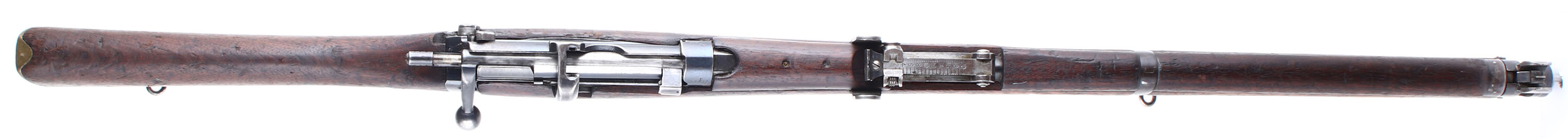 Birmington Small Arms Co. (B.S.A. Co. Limited), SHTLE III star (No.1 Mk.3 Star SMLE), Cal: .303 British, MFG: 1918, S/N: 77572 ( I serial block), Bolt action rifle, 25 1/4'' barrel. The two piece, semi-pistol grip wood stock is good with numerus nicks, dings, dents, & scratches from use/age. 3 missing chunk of the upper handguard, by the rear sight. This was a official English modification to the handguard done in the late 1950s when one ear or both ears around the rear sight were damaged (common as they were a weak point) & a replacement was not available due to shortages as they were phasing out the SMLE rifles. They would just trim the handguard back & then breaking was no longer a issue. The right cheek has a hole were a unit disc was, & is hand etched WS. Bottom of the wrist has a couple worn cartouches & stamped X. The bottom of the forend, just behind the bayonet lug is marked with a old crossed out S/N, & the S/N of the rifle. The metal carries a old arsenal re-finish with some lightly faded markings & a few dings under the finish. The blued metal finish rates 90% overall with spots of wear & thinning on the corners, around the safety on the receiver, & around the bayonet lug. Some areas of thinning toning brown. The rear of the receiver is marked with two proof stamps. Right side of the receiver band is marked with a crown over G.R., B.S.A.CO, 1918, SHT.L.E., III*. Left side of the receiver marked with import stampings, the receiver band is marked with proof stamps & the S/N. The chamber flats under the handguard have more proof stampings. Safety lever marked III. Other metal parts have small proof stamps. S/N mismatched bolt. More small proof marks on other metal parts. S/N mismatched bolt. S/N matching forend nose cap. The bore is good. Bright with strong rifling but has consistent roughness in the grooves. The barrel holds a square post front sight with protective ears, & a tangent U-notch marked 2 to 20. The stock carries a brass trapdoor buttplate that has dings & wear. Nothing inside trapdoor. The rifle both bottom sling loops. A Beautiful example of a WW1 Era Lee Enfield. FFL or C&R Req. - Value: 350 to 700