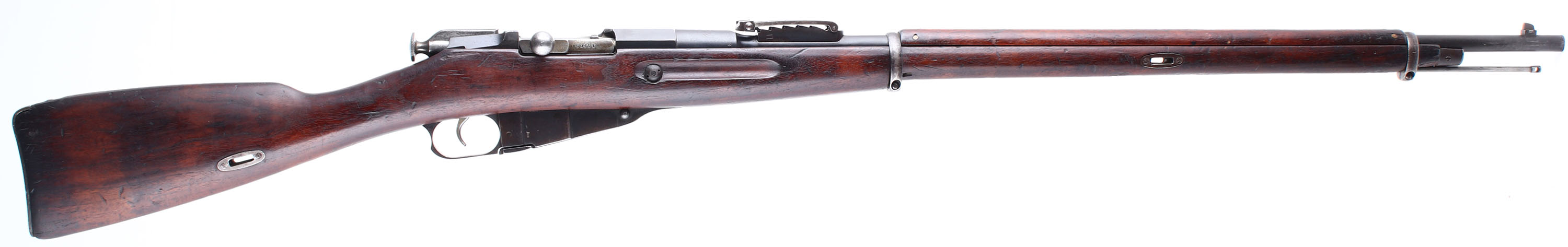 CONDITION: The straight wrist walnut stock is very good with various nicks, dings, dents, & scratches from use/age. One larger gouge on the right side of the toe. The metal sling well escutcheons are proud to the wood. The upper handguard has a 1'' crack at the rear, a 4 '' grain pop in the middle, & a 2 '' crack on the end. The rear & end of the upper handguard have more small chips & cracks. The metal has a arsenal re-finish & rates 87% overall with spots of wear/thinning & light speckled brown patina. markings are slightly faded from re-finish. The top of the receiver band is marked with a Russian imperial eagle over a Cyrillic ''P'', this means the rifle passed Russian inspection at Remington when it was made, not a indicator that it made it to Russia. The barrel shank is marked with another Russian imperial eagle over a Cyrillic ''P'', ''REMINGTON'', ''ARMORY'', ''1917'', ''NO'', the S/N, a ''0'' stamp just under the S/N, two small circle proofs, & five punch marks arranged like the five side of a die. The upper receiver tang is marked ''1'', ''C''. All parts are S/N mismatched; bolt is a mix of Tula & Izhevsk parts. The bore is good. Its bright but with thinned rifling & some roughness throughout the bore. The barrel holds a barleycorn front sight with a Konovalov V-notch rear sight. Sight markings are in ''Arshin'', a old Imperial Russian measurement. It equals to about 28 inches per Arshin. The stock carries a steel buttplate, starting to tone brown. Has both sling wells. Rifle has cleaning rod. FFL or C&R Req - Value: 400 to 800