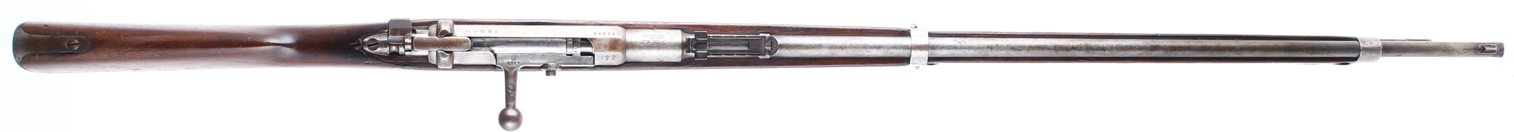 German/ French, I.G. Mod 71/95 Dovitis-Uruguay Mauser, Cal: 6.5x53.5mmSR Daudeteau. MFG: 1881, S/N: 92053, Bolt action single shot rifle. 31 1/2'' barrel.
