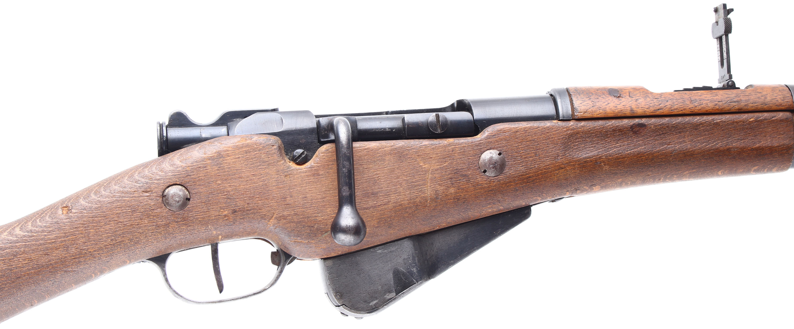 HISTORY: The Berthier was designed as a replacement for the aging single shot black powder Gras rifle that was being used by Mounted security forces, cavalry units, artillery units, & in colonial service. The French had the Lebel in the new smokeless 8mm round, but it had a tube magazine that ran the length of the barrel, therefore cutting them down created a problem with capacity. The new rifle was designed by Andre Virgile Paul Marie Berthier, a French civilian engineer in the Algerian railways. It used a three shot Mannlicher end-bloc clip, greatly increasing reload speed, particular convenience for cavalry and other mounted troops. The Lebel had to be single loaded instead of loading all at once, giving the Berthier a faster fire rate over the whole length of a battle, even though the Lebel held eight Rds., while the Berthier held three. The smaller capacity was chosen over the typical five rounds after field testing, where the cavalry expressed a preference for a non-protruding magazine that did not interfere with the balance or handling of the rifle. It was adopted on March 12, 1890 & designated the MLE 1890. The cavalry loved the carbine, & another version would be made specially for the Artillery troops which added a bayonet lug & changed the forend of the stock, this would be the MLE 1892. The MLE 1892 would be made clear to 1917, until production of its upgrade the MLE 1916 could start in May of 1917. The MLE 1916 added a five shot magazine & a handguard from the many complaints of use with front line troops. Production of both the 1890 calvary & 1892 Artillery would stop & the MLE 1916 Mousqueton would replace both. Older models would also be updated with the newer parts once they got sent back to a arsenal for repair, leading to rifles with a mix of parts & markings. The MLE 1892/M16 carbines were the only model of Berthier produced after WW1 with all other being discontinued, it would made till 1938. This gun is Ball N marked. This means it was modified to use the new Ball N cartridge. This new cartridge was tailored to long range, heavy machine guns having a heavier bullet & more powder. This results in more chamber pressure & the chambers of older rifles had to be modified to safely fire this new cartridge. The cartridge was developed in 1932 & all older weapons still French inventory from 1934 to 1939 were modified to the ball N chamber & marked ''N'' on the barrel or receiver. Firing Ball N ammo out of a non ''N'' marked gun is unsafe & shouldn't be done. A ball N marked gun is safe to fire N & Non-N 8mm Lebel out of.