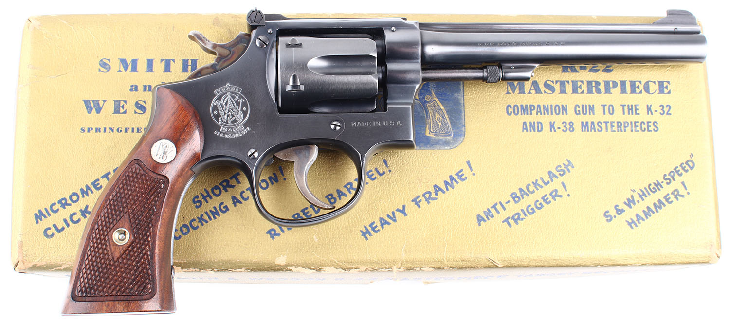 Comes in a factory Smith & Wesson K-22 master box. FFL or C&R Req - Value: 600 to 1600