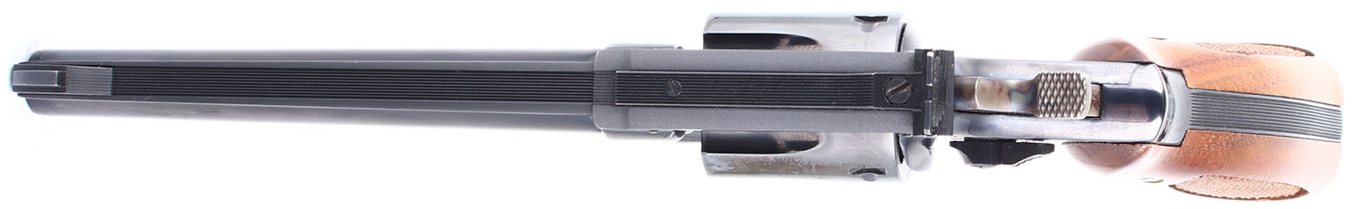 Smith & Wesson, Model 17-3, CAL: 22 LR. MFG: 1975. SN: 8K52778, Double Action Revolver. 6 barrel. The factory checkered wood grips with S&W medallions are in excellent condition with very light handling wear. The factory blued finish rates 99% with very light wear, the case hardening on the hammer and trigger is very good but slightly faded. Bore is excellent. Mechanically solid, the cylinder has some side to side & back & forth play. Target sights, serrated front ramp sight is integral to the barrel, windage and elevation adjustable rear sight is screwed to the top of the frame. FFL or C&R Req. - Value: 600 to 900