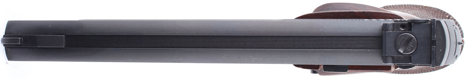 Smith & Wesson, 41, CAL: 22 LR, MFG: 1957-70, SN: 29483, Semi Auto Pistol. 5 1/2'' barrel. Checkered wood grips are in very good condition with some handling wear. The blued finish on the frame and slide rates 98%. Bore is excellent. Mechanically solid with some side to side play in the slide. Blacked out target sights, front serrated sight is integral to the slide, windage and elevation adjustable black rear sight is set into a dovetail cut. With one magazine. FFL or C&R Req. - Value: 700 to 1400
