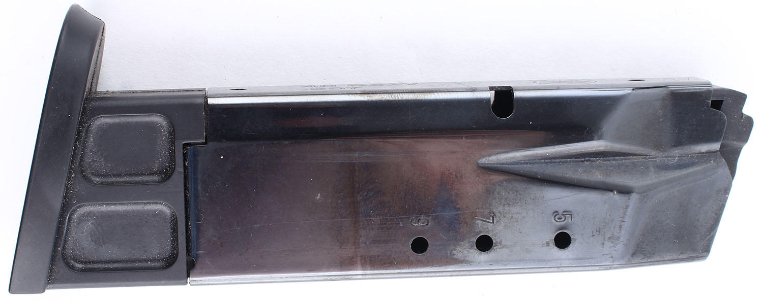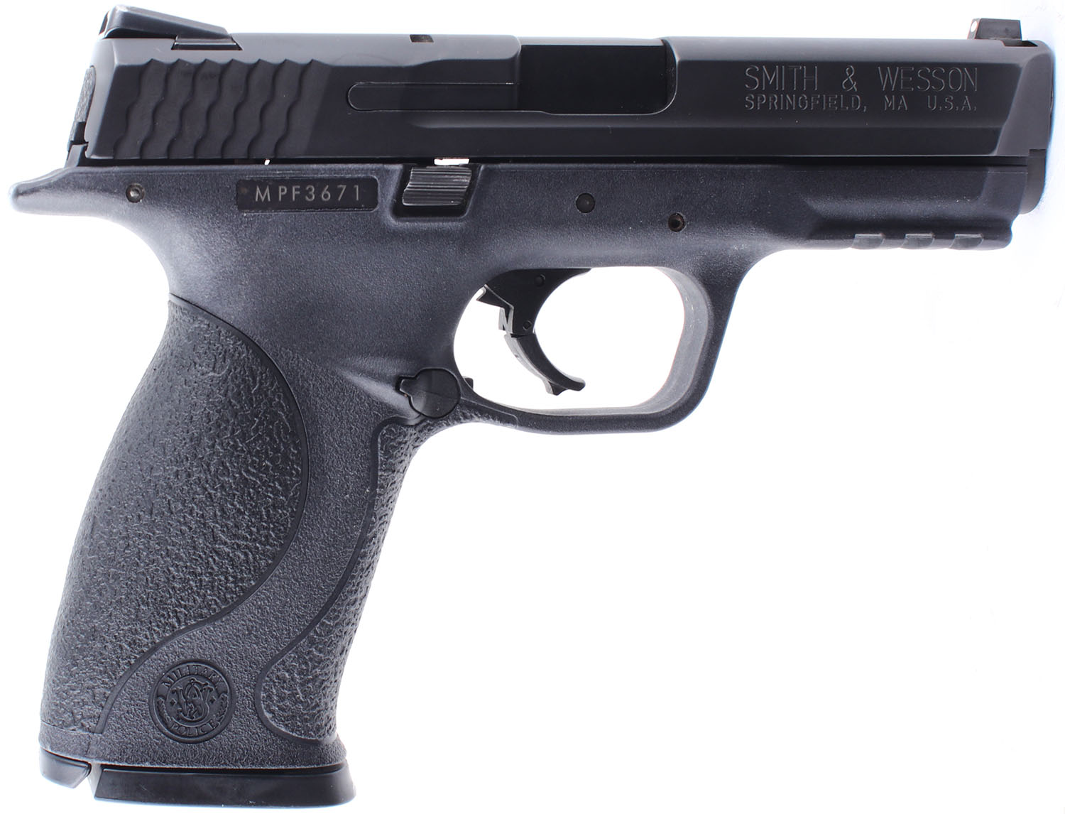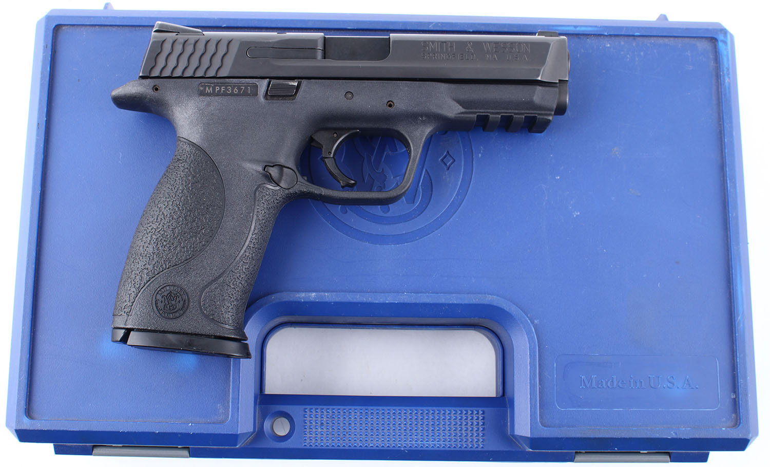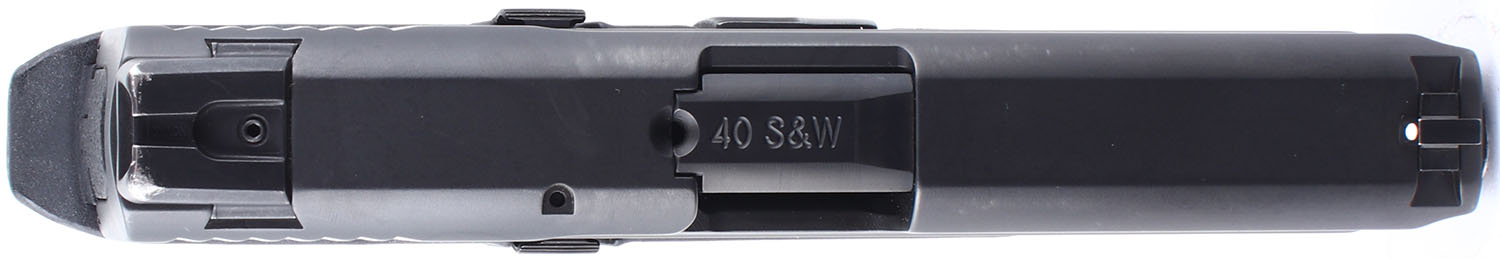 CASED Smith & Wesson, M&P40 Stainless, CAL: 40 S&W, MFG: Modern, SN: MPF3671, Semi Auto Pistol. 4'' barrel. The textured plastic grip frame is in very good condition with some wear. The black finish on the slide rates 98%. Bore is excellent. Mechanically solid with very little side to side play in the slide. 3 dot white combat sights, both front and rear sights are set into dovetail cuts, the rear sight has a set screw and some wear on the top. Comes in a factory plastic hard case with two 10 round magazines, and an owners manual. FFL Req. - Value: 200 to 500