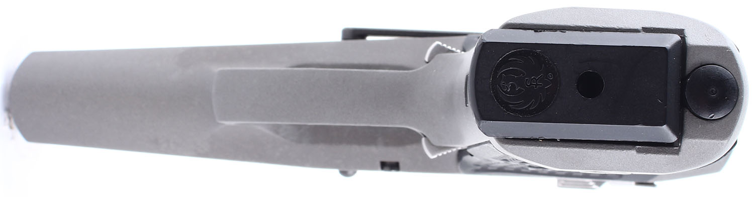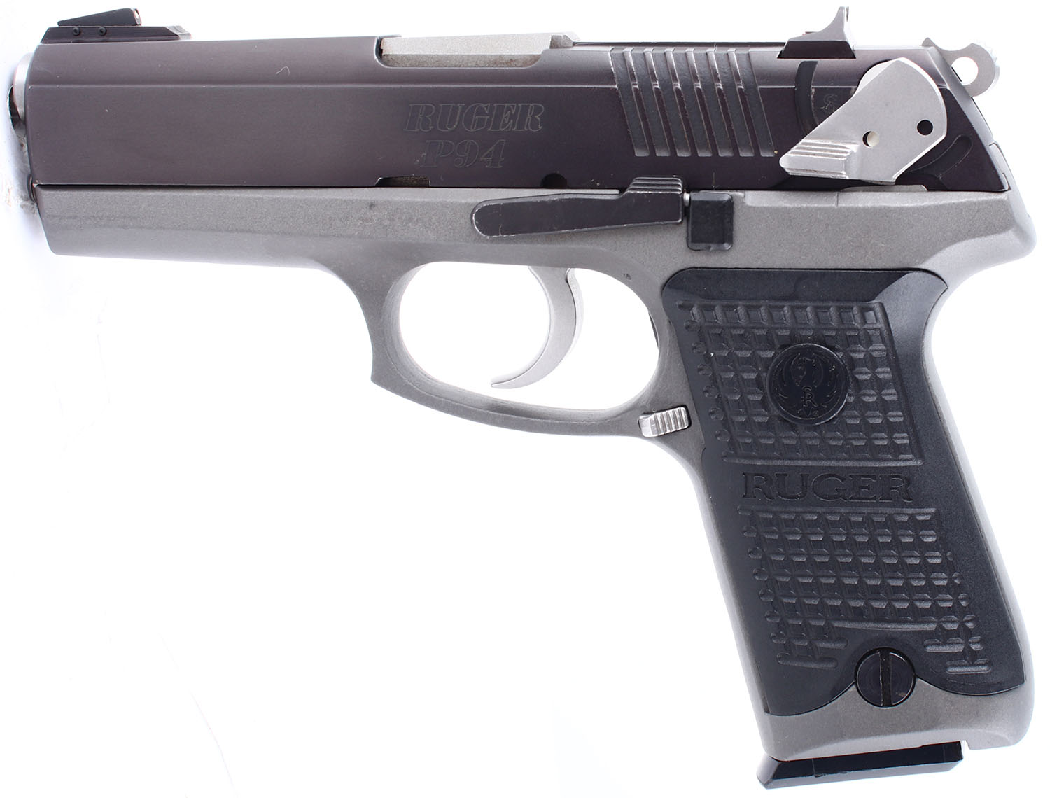 CASED Ruger, P94, CAL: 40 SW, MFG: 1994-2004, SN: 341-60216, Semi Auto Pistol. 4 1/4'' barrel. The plastic grips are in excellent condition. The frame and slide rate 99%. Bore is excellent. Mechanically solid with some side to side play in the slide. 3 dot white combat sights, front sight is pinned to the slide and rear is set in a dovetail cut on the slide. Comes in the factory hard plastic case, with three magazines, an owners manual, and other related paperwork. FFL Req. - Value: 250 to 500