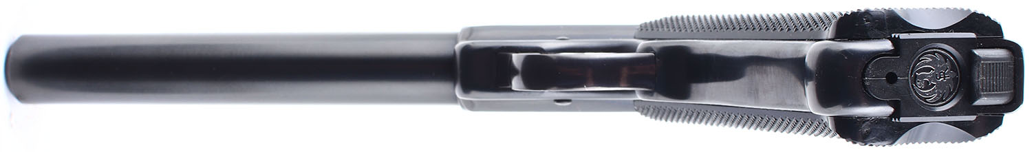 Ruger, Mark II Target, CAL: 22LR, MFG: Modern, SN: 210-40445, Semi Auto Pistol. 6 3/4'' barrel. The checkered plastic grips are in excellent condition. The finish on the barrel and framerates 99%. Bore is excellent. Mechanically solid. Blacked out target sights, front sight is screwed to the top of the barrel, the rear windage and elevation adjustable sight is set in a dovetail cut on the barrel. Comes with a magazine. FFL Req. - Value: 250 to 500