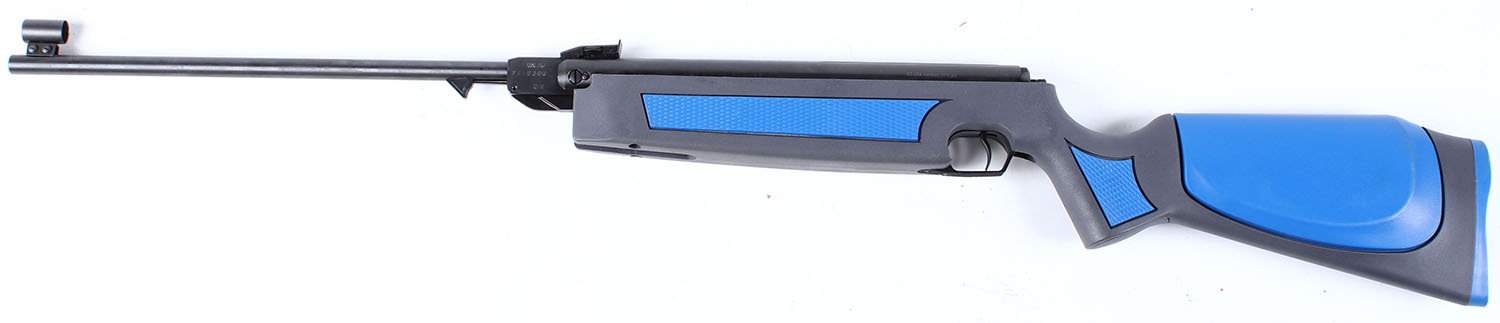 CZ Slavia, Model 634 Pellet, CAL: 4.5mm or .177, MFG: Modern, SN: V118380, Break Barrel Pump, 17 5/8'' barrel. Promoted as the deluxe version of their 630 & 631 models. A break barrel design and spring piston propulsion is pretty standard, but this Slavia has a special little extra which contributes to its good accuracy. Underneath the barrel just in front of the barrel block is a sliding lever that is actually a barrel locking mechanism. When pulled forward it unlocks the barrel so you can cock it, & when the action is closed it ensures a positive barrel to receiver union. There is a stout black plastic o-ring seal also ensuring a good air-tight joint. The cheeked, grip paneled & flat pistol grip polymer stock is excellent. The metal blue finish rates excellent. Bore is excellent. Fitted with a dial adjusting rear & hooded post front sights. Stock is fitted with a solid recoil pad. Overall excellent. No FFL Req. - Value: 150 to 300