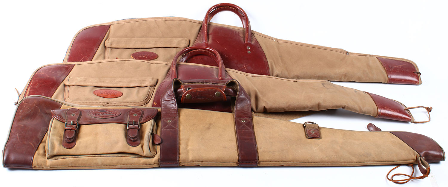 Lot of (3) Canvas & leather trimmed zipping gun cases. 2 Boyt. Grade: Excellent - Value: 30 to 75