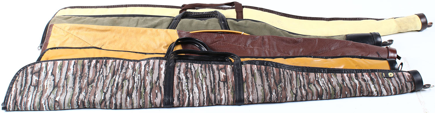 | Lot of (5) Nayugahyde & canvas zipping gun cases (1) is a Brown...
