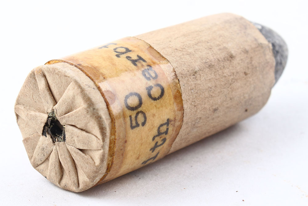 | .50 Smith's Carbine. NHS. PT Lead. Old tape on case. Grade:...