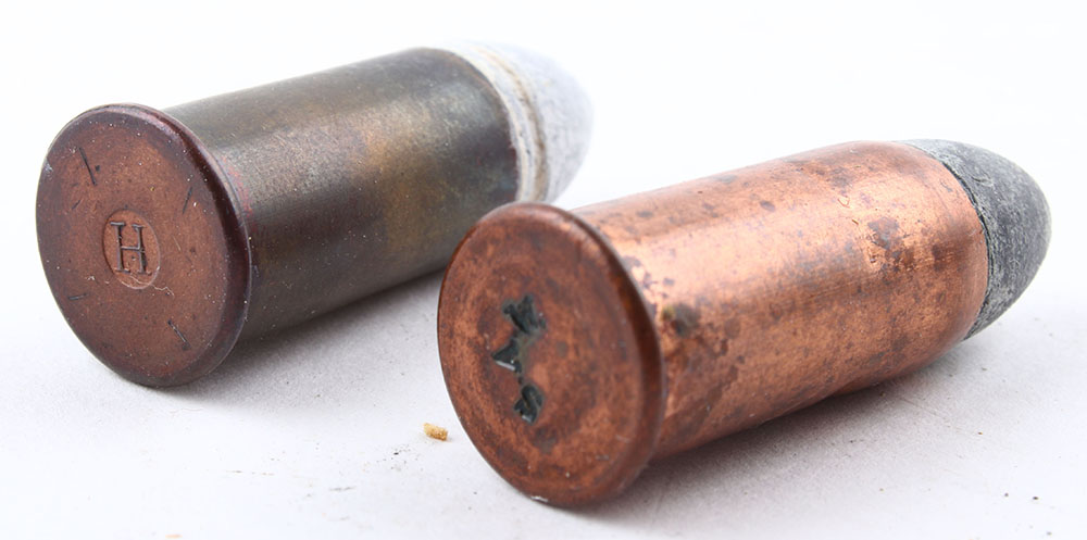 Lot of 2. (1) 56-52 Spencer. HS:''H'' raised in a circle. FN Lead. (1) 56-50 Spencer. HS:''SAW'' impressed, PT Lead. Grade: Very Good - Value: 20 to 40
