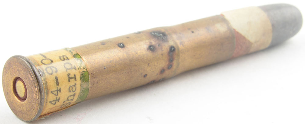 44-90 Sharps & Remington bottleneck (2.4'' case), NHS. RN PP Lead. Part of paper patch is gone. Grade: Very Good - Value: 20 to 50