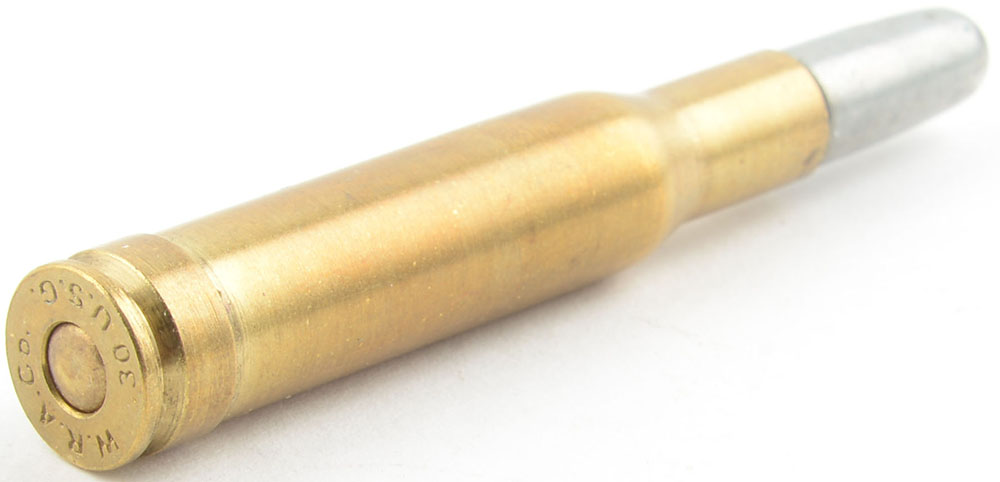 .30-40 Krag Belted Experimental. HS:''W.R.A. Co. .30 U.S..G.'', RN CN FMJ. his cartridge is believed to have been made in South Africa for collectors who wished to have an example of this rare cartridge but are unable to obtain one. This one has a very small ''R'' on side of case. Grade: Excellent - Value: 20 to 40