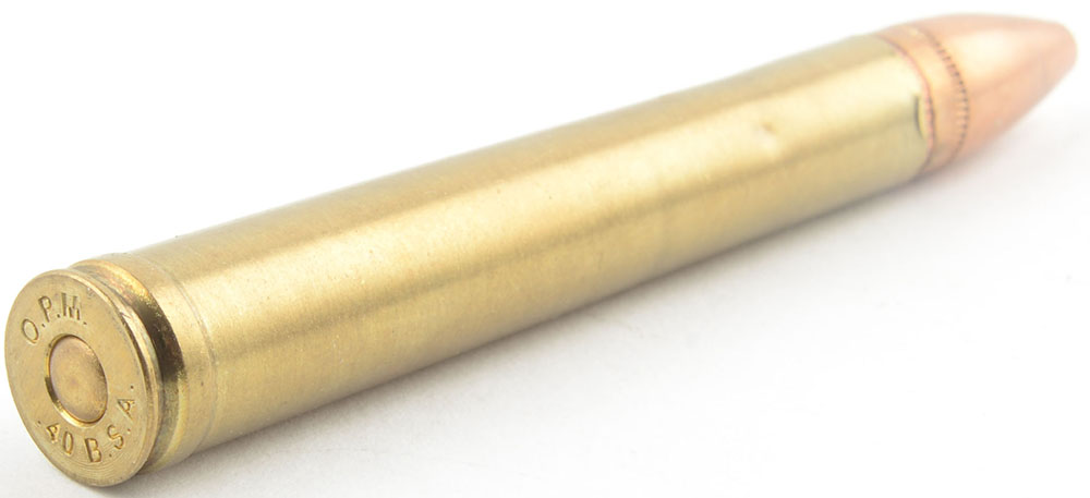 .400 BSA. HS:''OPM .40 BSA'', FN CJ SP. This cartridge was made in South Africa and believed to be for collectors who wished to have an example of this rare cartridge but are unable to obtain one. Minor damage at case mouth. Grade: Good - Value: 20 to 40